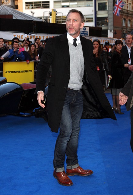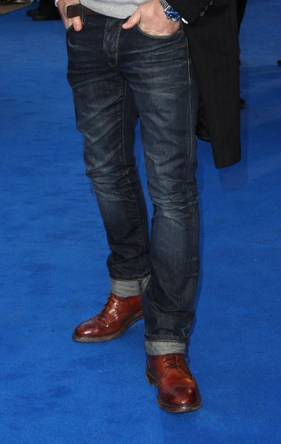 Am having some proportion problems with his outfit here in London at the premiere. May have something to do with the length of that jacket. Not sure I’m feeling the shoe selection either.