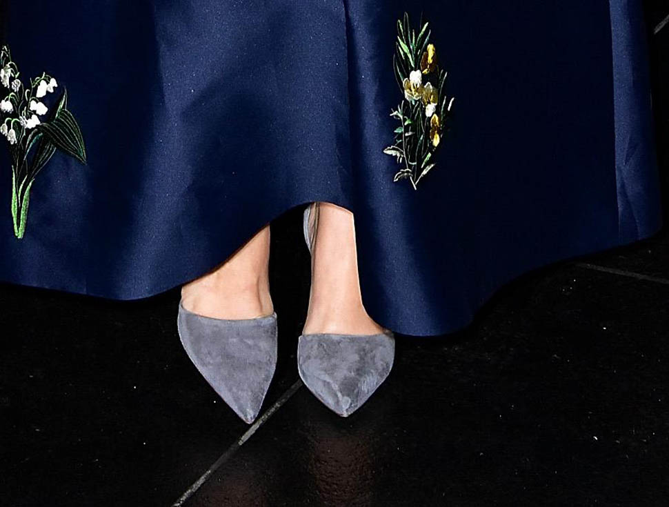 This dress is Stella McCartney. It’s gorgeous on Drew Barrymore, fits beautifully. Going suede with the shoes, however, wasn’t the best choice. Kinda dials everything back, doesn’t it?