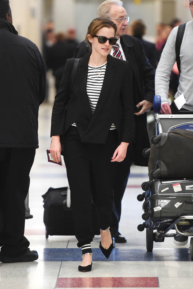 Carpets & Candids: Emma Watson’s cuffed travel pants