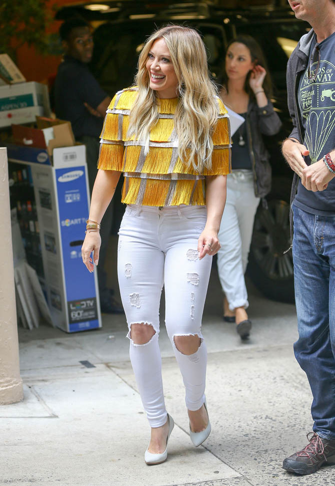 Hilary Duff is wearing the sh-t out of these white jeans. But this top…