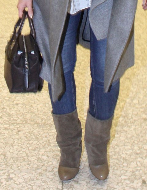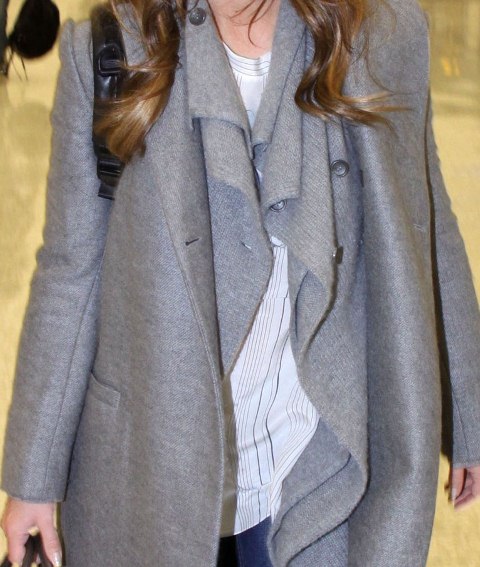 It’s a good coat but it’s even better with the sweater underneath. Really flattering around her shoulders and I like the way the combination is falling in front. Too bad about those boots though.