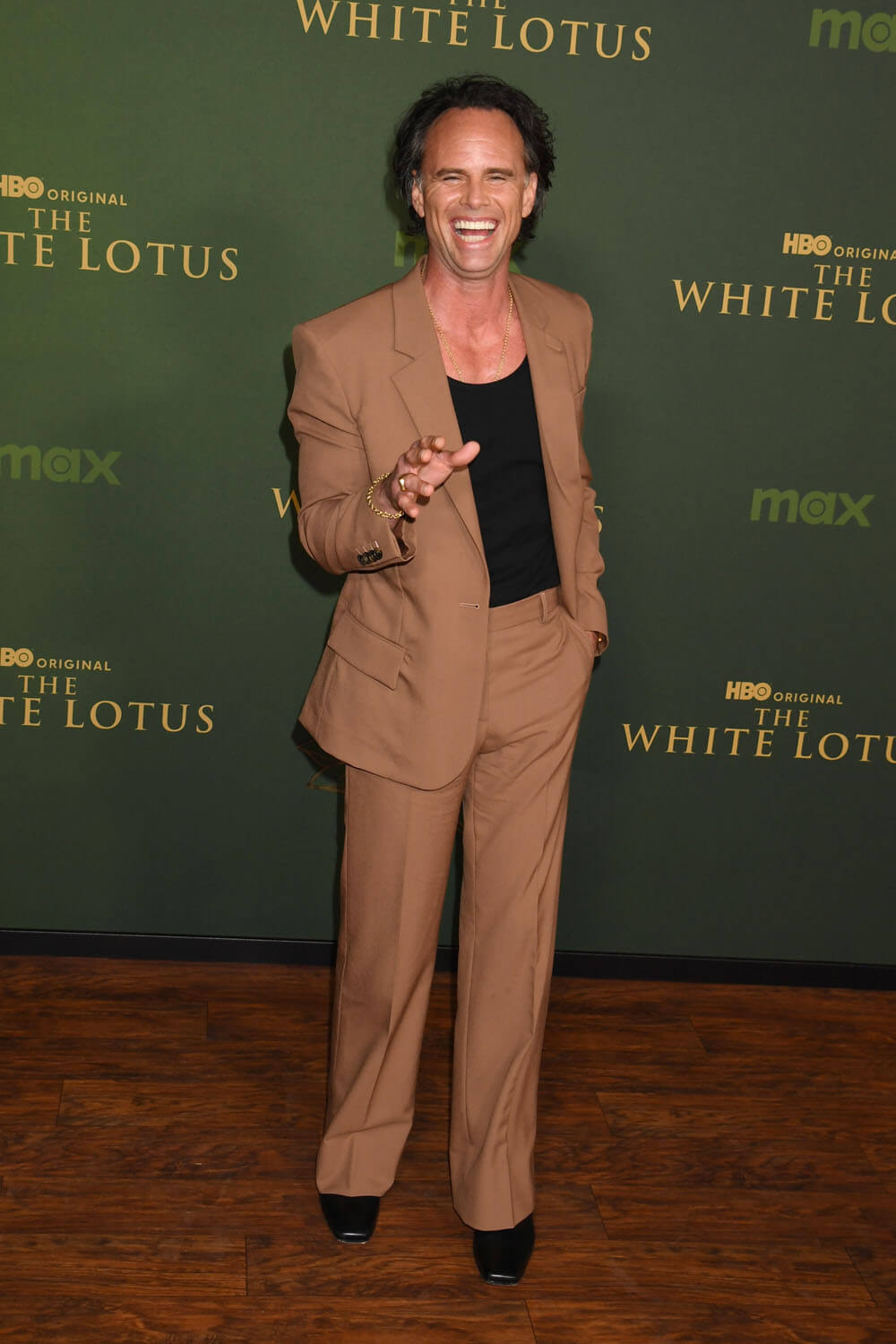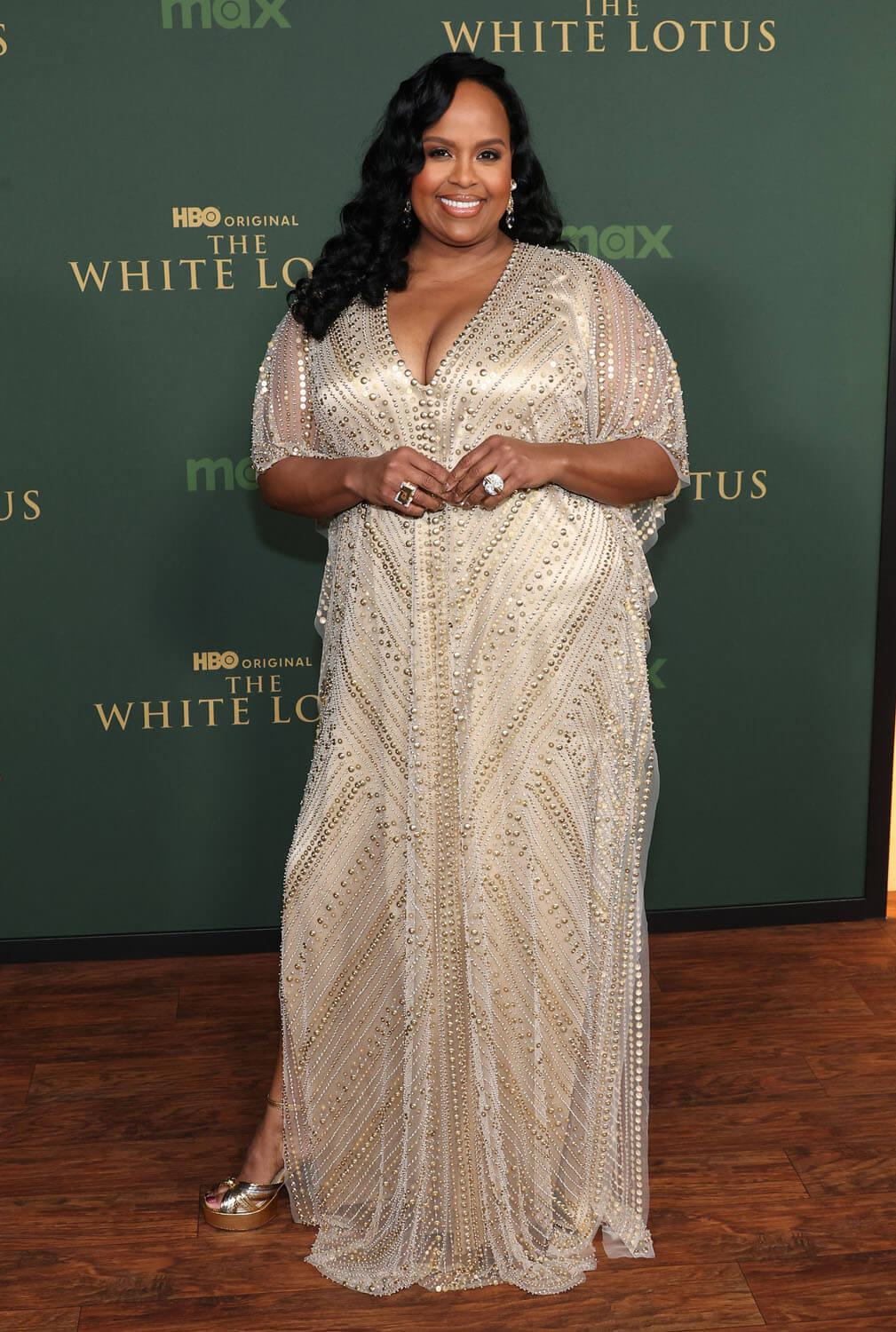 Returning White Lotus star Natasha Rothwell was there in a beaded gown giving Art Deco vibes, appropriate for a show about abundance and luxury. Series creator/writer/director Mike White was also there, as was Survivor host Jeff Probst. White competed in season 37 of Survivor, and he has talked about how his experience contributed, in part, to The White Lotus (mainly: people complaining in beautiful locations), so Jeff Probst is like a fun red carpet Easter egg.