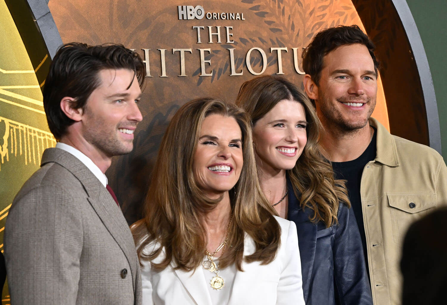 Katherine Schwarzenegger and Chris Pratt attend the world premiere of "The White Lotus" Season 3 at Paramount Studios on February 10, 2025 in Los Angeles, California