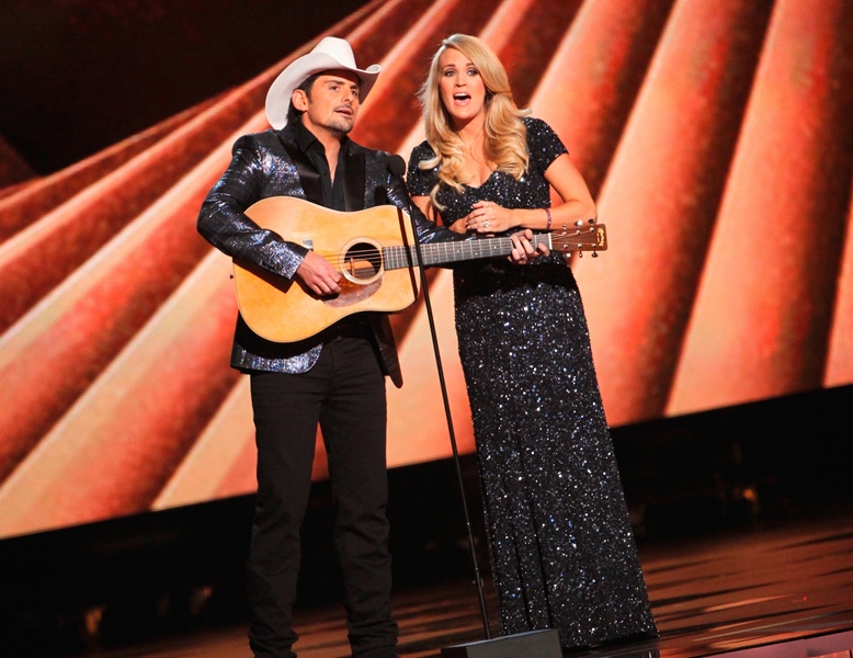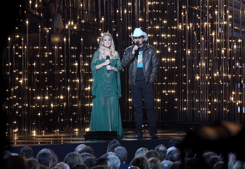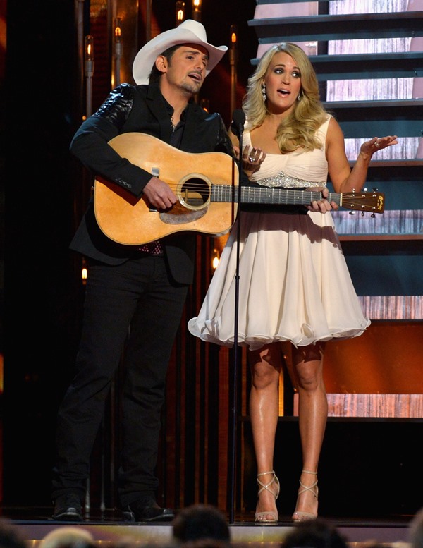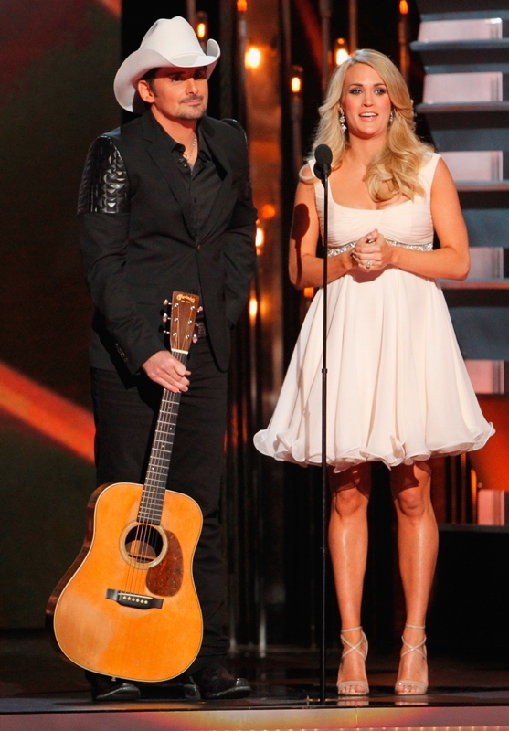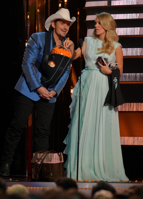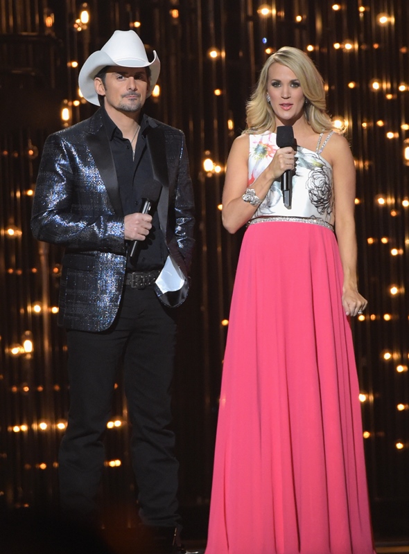 The CMA Awards happened last night in Nashville. Carrie Underwood and Brad Paisley hosted again. And they are GREAT at it, as comfortable as Amy Poehler and Tina Fey at the Golden Globes, and just as willing to go there. I mean, they were already taking shots at Taylor Swift even before she left country – and you know, YOU KNOW Carrie can’t pass up an opportunity to take shots at Taylor Swift. Now that she’s left country, well, that’s where they went. And it was well done.