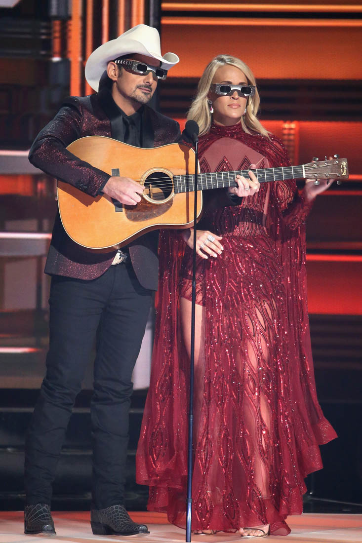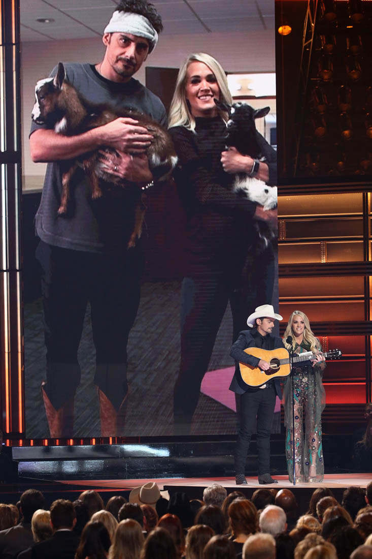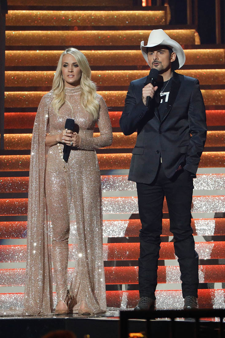 I also cannot get enough of Carrie Underwood and Brad Paisley co-hosting. Which is probably why they just did it for the 10th year in a row. Carrie is never my favourite. But my favourite Carrie is when she’s monologue-ing with Brad at the CMAs wearing one batsh-t outfit after another. At this point, it’s almost comforting seeing her out-bonkers herself with every costume change.