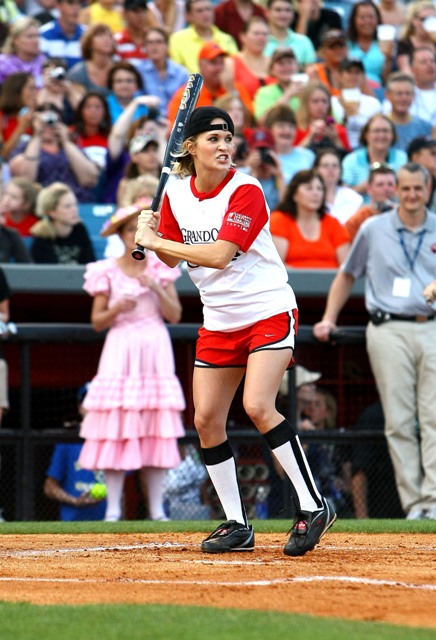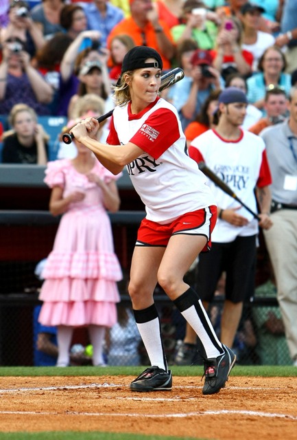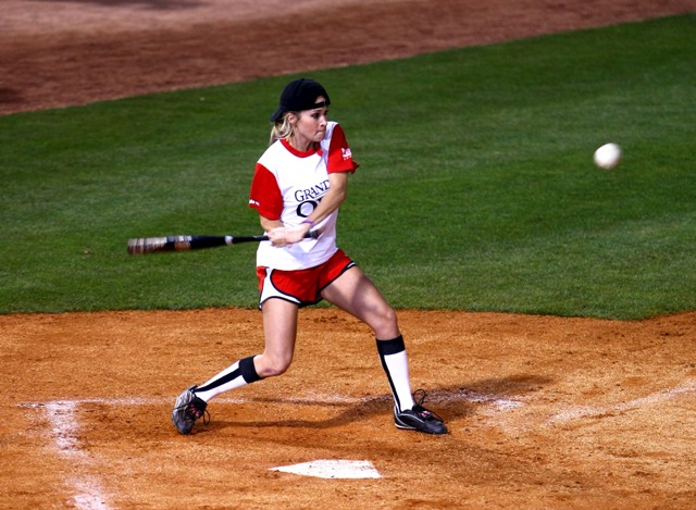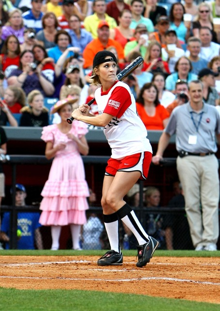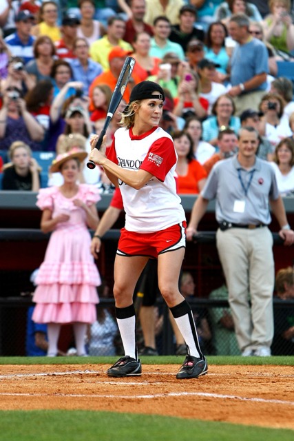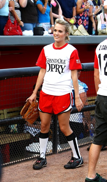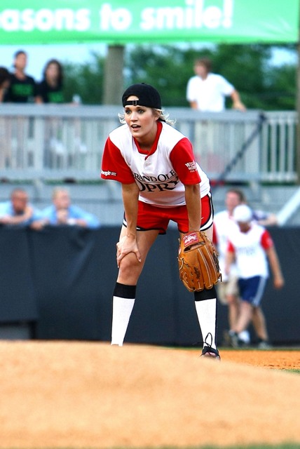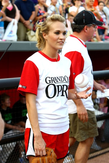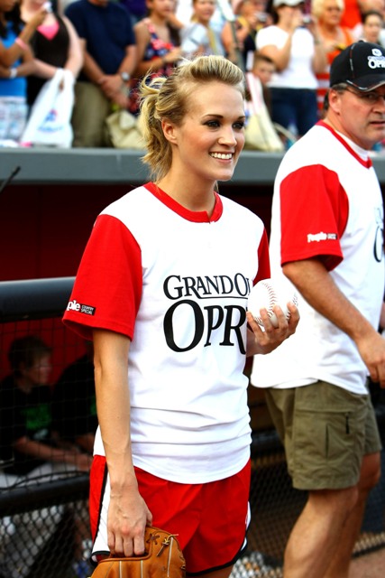 This is Carrie Underwood yesterday at the City of Hope Celebrity Softball Challenge. Carrie likes to give back when there’s a big audience.