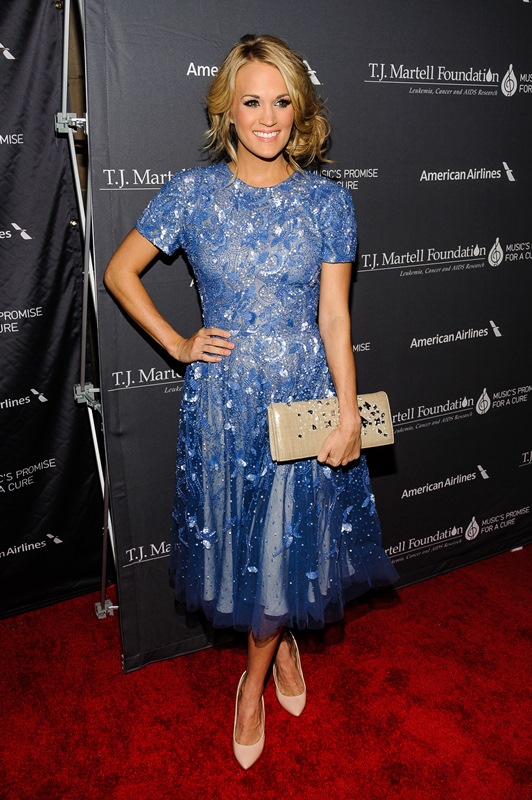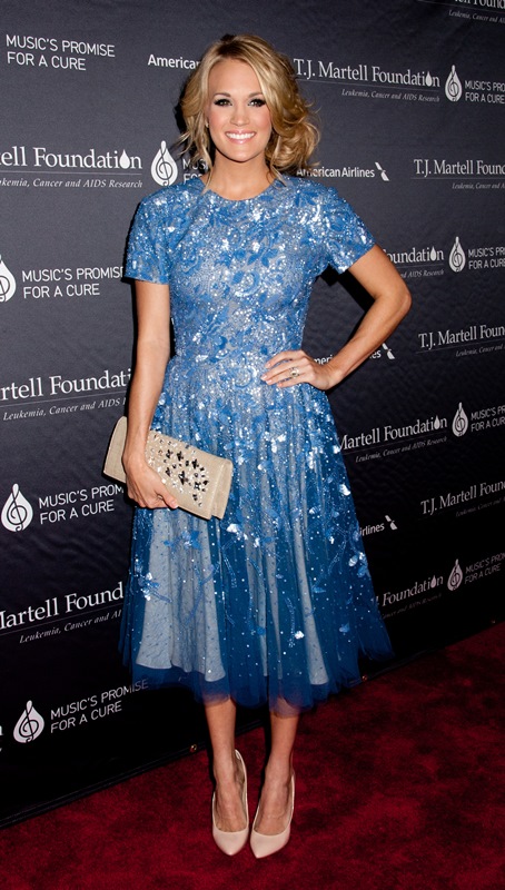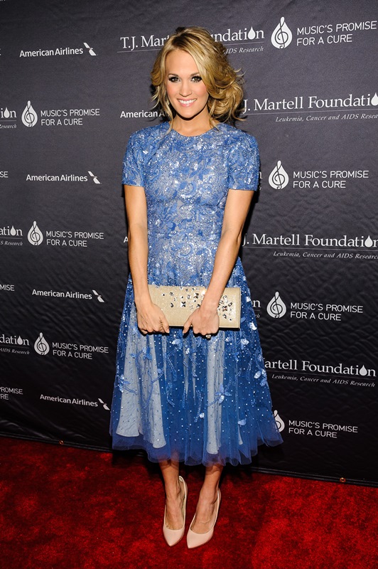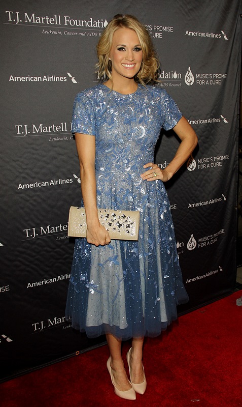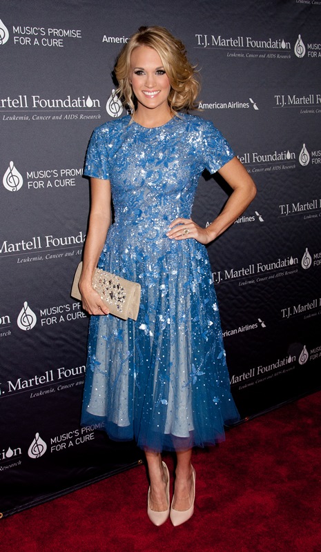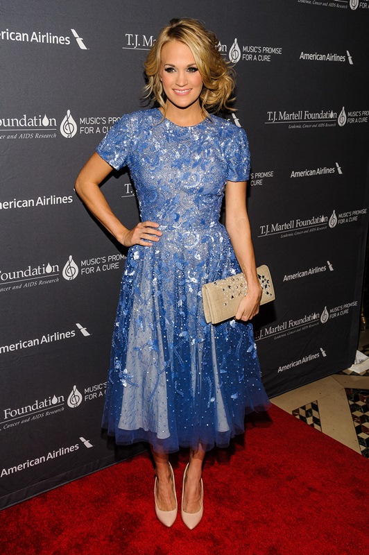 Carrie Underwood was at the TJ Martell Foundation Gala last night in New York. She’s in town because she’s working on The Sound Of Music, the live television production of The Sound Of Music to air on NBC in December. In which she’s playing Maria von Trapp.