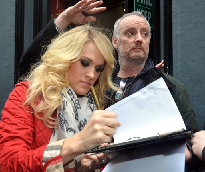 Still blonde and very, very yellow -- Carrie Underwood in Ireland. I have never been blonde, and don’t intend to be but is…this is a desired shade? Yellow? Straw? Is this something you ask for? Sasha calls it Ebola “Paris Hilton” yellow. People WANT Ebola Paris Hilton yellow?