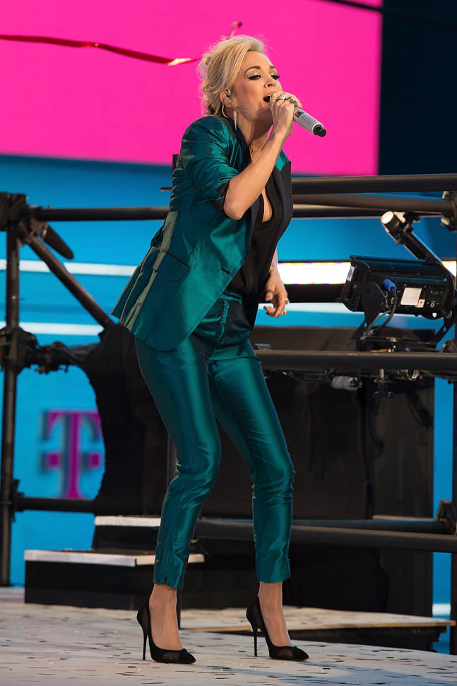 I don’t actually mind the suit. It was New Year’s Eve. It was shiny. It was well-tailored. It’s so much better than the dresses she wears to award shows.