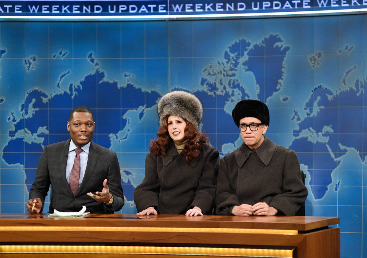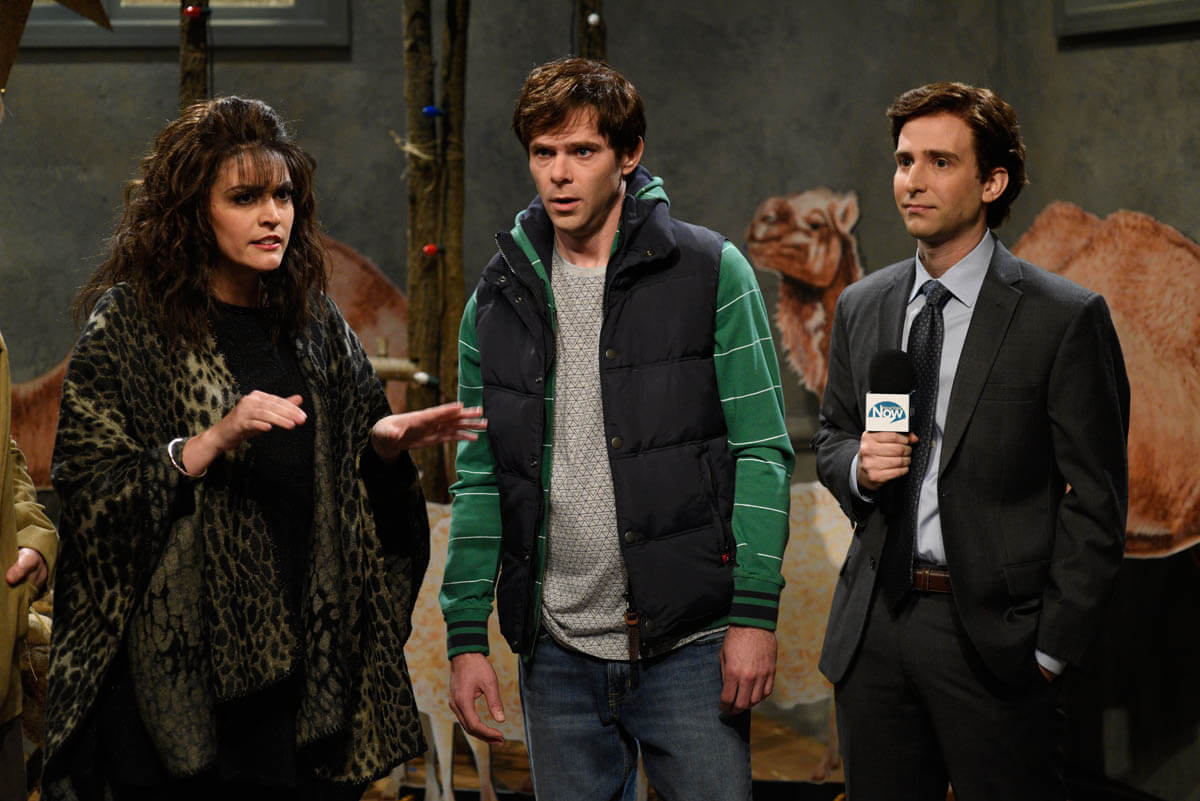 Then there were the weird sketches, like this “pervy elves” bit that fails to work, and the oddly hostile “Microsoft Robot Presentation” sketch. It’s always nice to see Fred Armisen, but I’m still not sure what the punchline is supposed to be. Is it that the robots are gay? That they’re so stereotypically gay? Or that some tech bro is weirded out by their sexuality? Which one are we supposed to be laughing at? I don’t understand this sketch on any level, beginning with how it got on air in the first place. I do, however, appreciate the subtext that maybe Casey Affleck is an asshole.