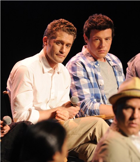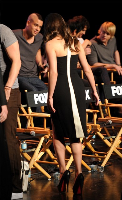 These were my thoughts as I looked through photos yesterday of the cast of Glee at the Academy screening yesterday. As you can see, Dianna Agron was rather plainly attired in what looks like a sweater wrap dress, Cory Monteith walked out of an Abercrombie & Fitch ad, Morrison didn’t put on anything special, nor did Jane Lynch, but Lea Michele, of course, well, see for yourself.