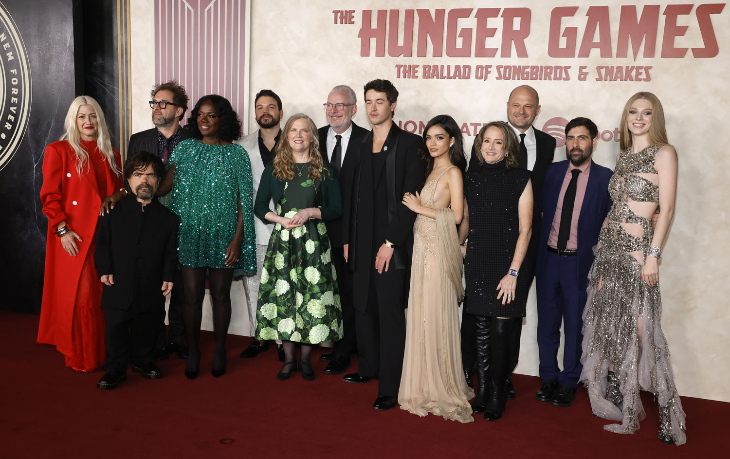 With three days to go, the cast made its final red carpet stop in Hollywood last night. Rachel Zegler went for full drama in a tan gown with a veil. Hunter Schafer, who in my opinion is criminally underused in the film, looks unreal in this sparkling cut-out dress with her hair straight and parted in the middle and serving so much face card, OMG.
