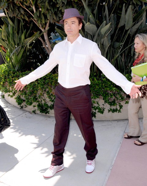 He was there for both Iron Man and Sherlock Holmes. As you can see, there was an ensemble for every occasion. Sexy bitch.
