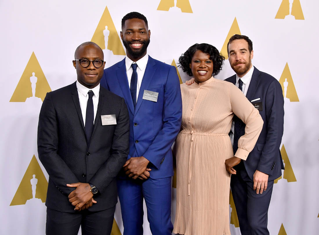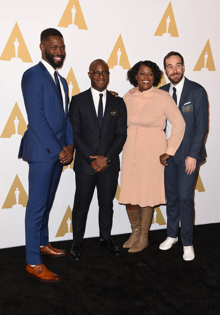 Here’s the Moonlight team at the Nominees Luncheon yesterday, including Tarell McCraney who co-adapted his play, In Moonlight Black Boys Look Blue, with Barry Jenkins and is nominated for a writing Oscar. The Guardian published a wonderful profile on Tarell this weekend about how his childhood in Miami informed the film and the parts of his life he had to work through in order to give us Chiron. Now he’s posing in the Oscar class photo of 2017.