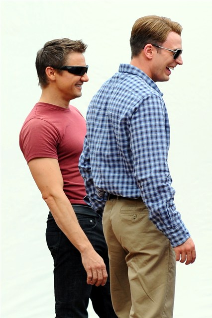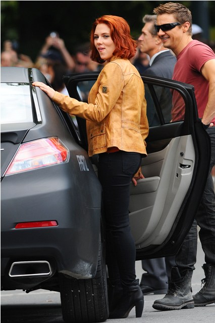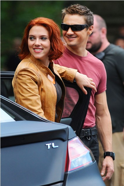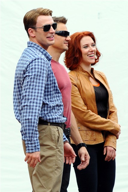 Rounding out the superheros - RDJ as Tony Stark, Scarlett Johansson as Black Widow Natasha Romanoff, Jeremy Renner as Hawkeye in street clothes because I don’t know his character’s regular person name, sorry I’m not a nerd, and Captain America Steve Rogers, Chris Evans, all of whom must be thinking Thanks God I’m not the one in Central Park swinging around my big hammer.
