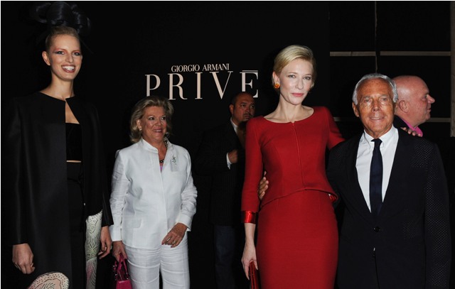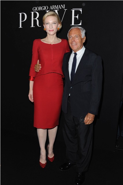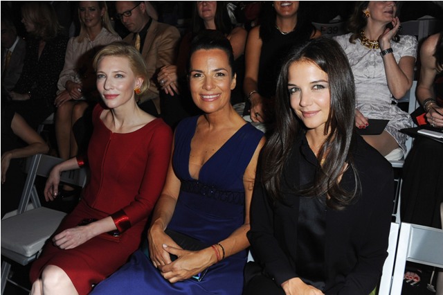 It’s Haute Couture Week in Paris. Cate Blanchett and Katie Holmes were front row, alongside Roberta Armani today at the Giorgio Armani Prive presentation. As you know, Cate has long enjoyed a close friendship with Mr Armani. And of course Mr Armani designed KatE’s wedding dress. So Cate flew in from Australia where she’s been spending most of her time these days to support the designer. And KatE flew in from Miami where she spent the weekend with her husband Tom Cruise to celebrate the Fourth and also his birthday.