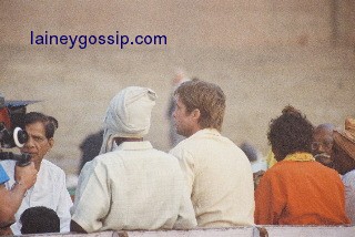 Costume for The Curious Case of Benjamin Button co-starring Cate Blanchett currently shooting in New Orleans. An exclusive from my sources, as I told you 2 weeks ago, The Chosen Family is rumoured to have purchased a home in the Garden District and have been able to roam around town surprisingly undisturbed. Still no word on whether or not they’ve decided to spend the holidays in the Caribbean. You’ll recall that requests were made to 4 tropical destinations for accommodations servicing nannies and bodyguards – will keep you posted. In the meantime, here are some photos sent to me by the lovely J, taken from a civilian camera during Brad’s trip to the Ganges a few weeks ago. Tourists in Varanasi were on a boat when they spotted him with an Indian man, both paddling a boat up the river, each one with an oar, and another man had a camera, shooting them rowing. The fans couldn’t help themselves and started shouting, prompting Brad to stop and change positions, sitting with his back to the group until out of view. A documentary in the works, perhaps? I’ve no idea but I do like the idea of a sweaty Brad stroking along in a boat, soaking in the surroundings. Total loin quiveration. Source