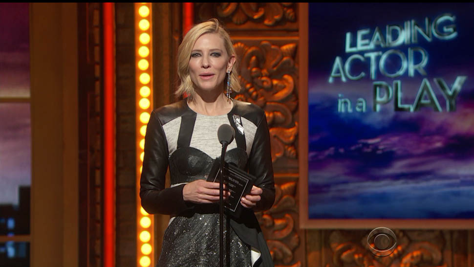 Carpets & Candids: Cate in leather sleeves at the Tonys