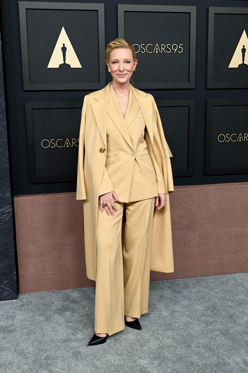 With all of this in mind, here’s Cate at the Oscar Nominees Luncheon yesterday. She is the frontrunner to win Best Actress with Michelle Yeoh behind her. There is video of them greeting each other during the event.