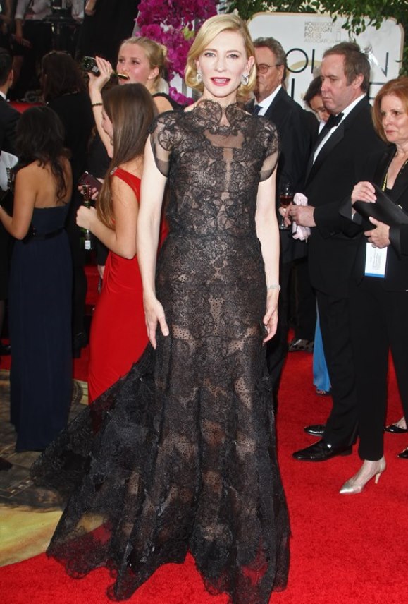It wasn’t about the looks last night though. It was about being generally awesome. Cate started early. She told Leonardo DiCaprio, within full range of the parabolic microphone on Ryan Seacrest’s island of gentle interrogation, that she hated every second of her interview. She could have been making a joke that we were all allowed to hear, but come on. She made short work of the musical cues, mocking them openly on TV for the absolute trainwreck that they were. And she continued to be kind of otherworldly, saying the word “barbiturates” in a room where I’m sure most of the people don’t know whether they’ve heard that word before.