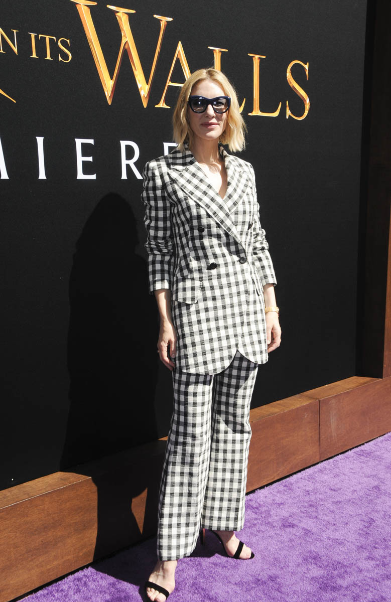 Here’s Cate Blanchett in a checkered suit that, well, probably only Cate Blanchett could pull off. Because of these pants. These are short bell bottom pants on a full patterned suit that remind me of Madonna during Blonde Ambition. It’s a lot of look for one look. But, of course, she’s making it work. She’s even making it work with those one strap sandals. It’s the kind pants-shoes combination your kooky cougar aunt wears to a summer barbeque with a one-shoulder ruffle tank top and a lot of perfume. If there’s anyone who can rock that look though, it’s Cate B.