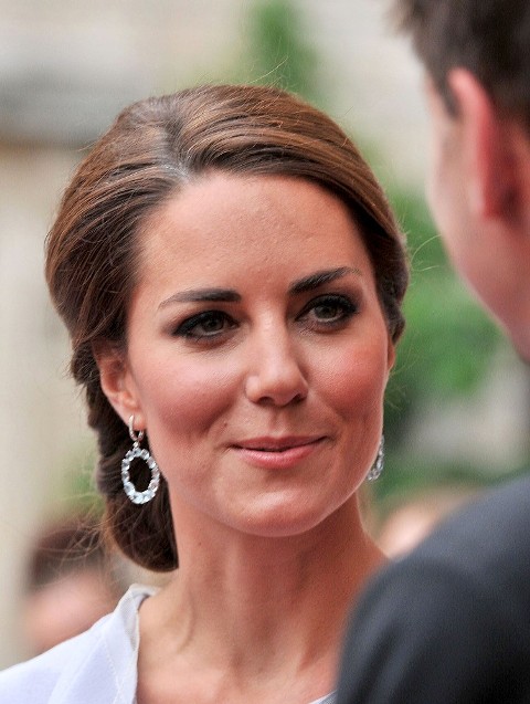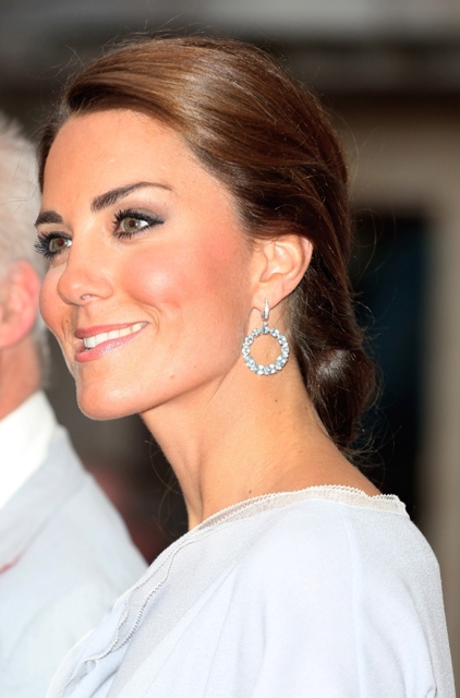 Here’s Kate in dove grey and a regal updo which, I mean, I know she’s a royal person and these hairstyles are kind of expected from royal ladies but I dunno, it’s not my favourite and I also think it’s way too fancy for what she’s wearing. It would be one thing if she was in a floor length gown. But this, this is barely a cocktail dress.