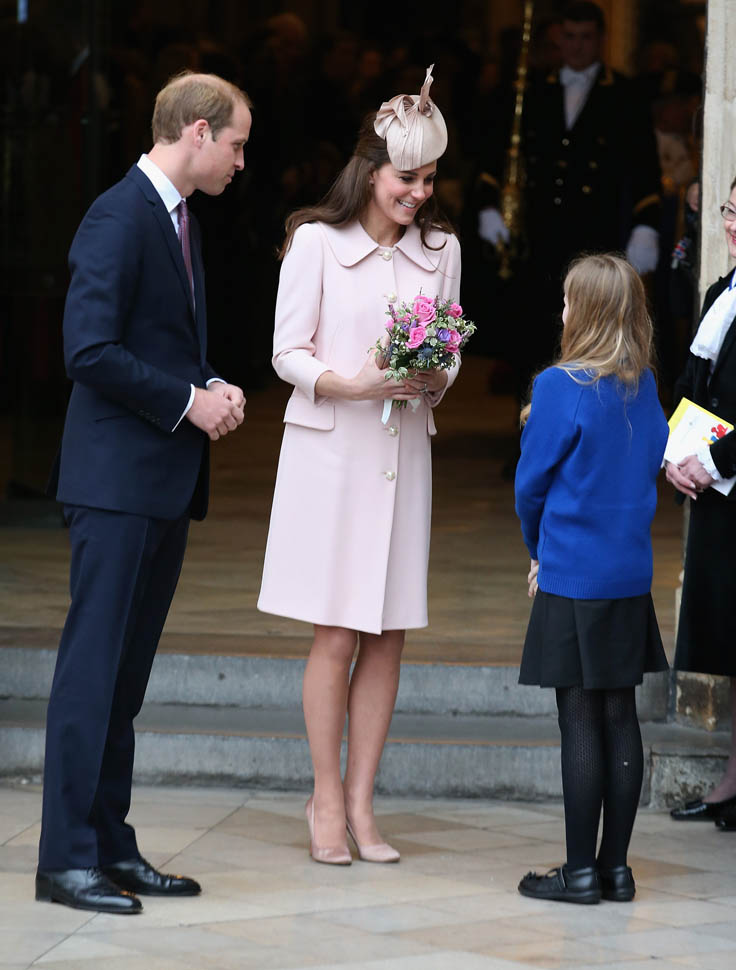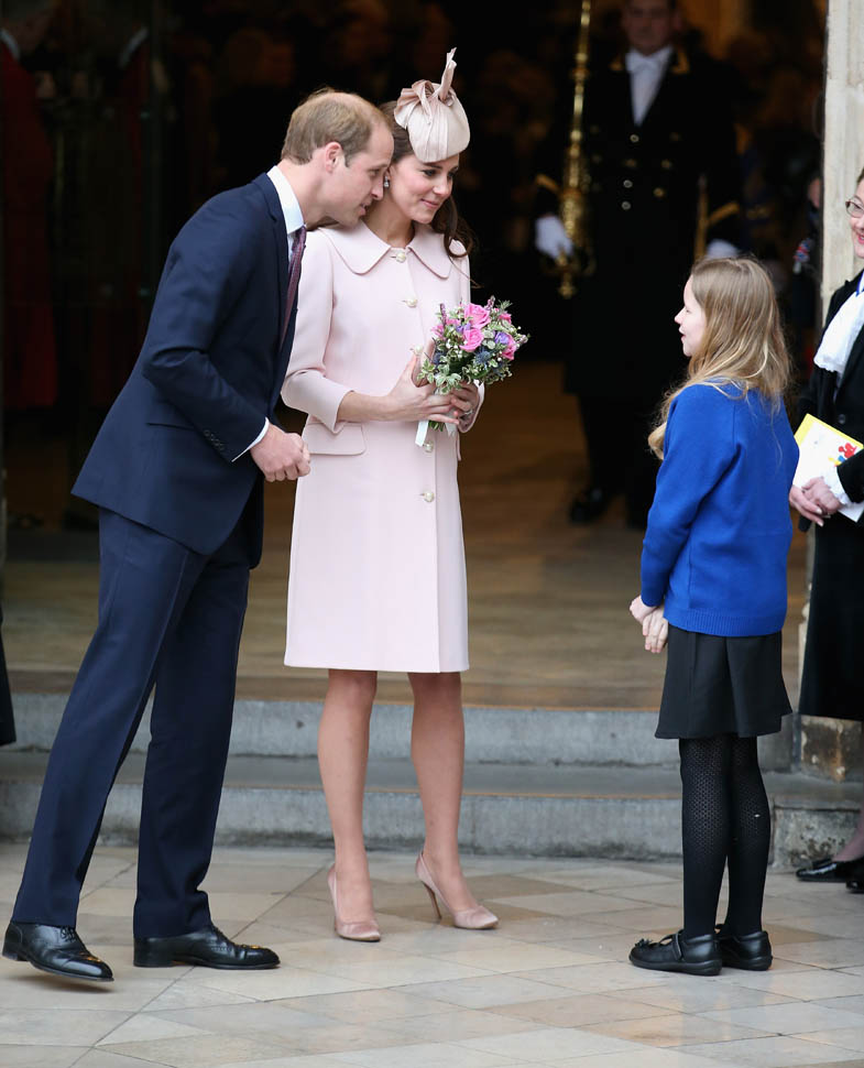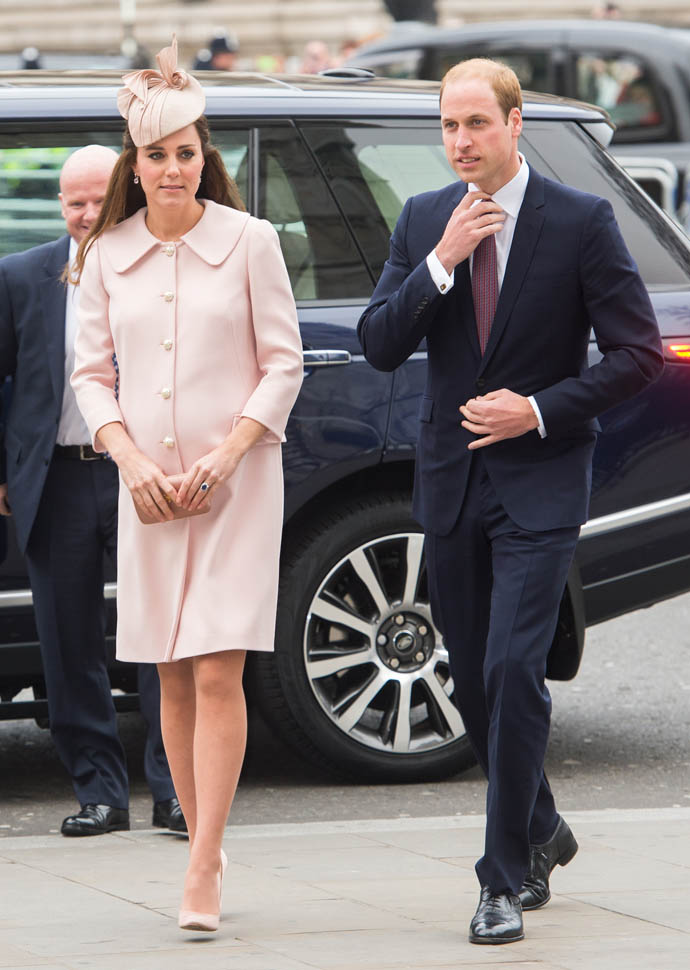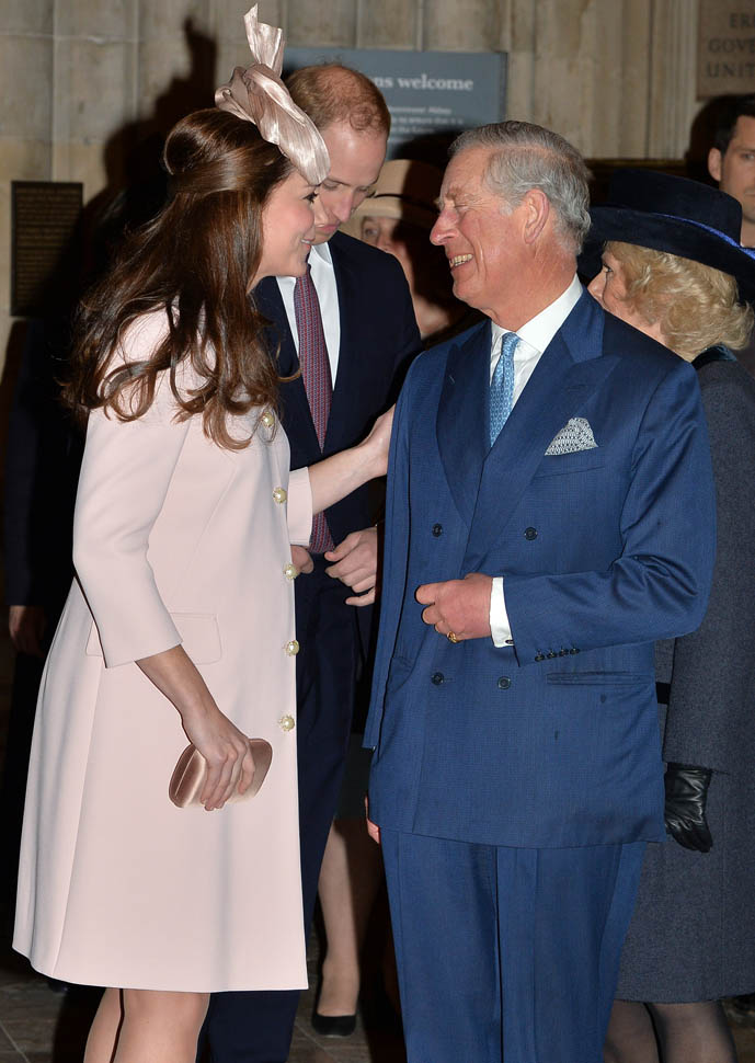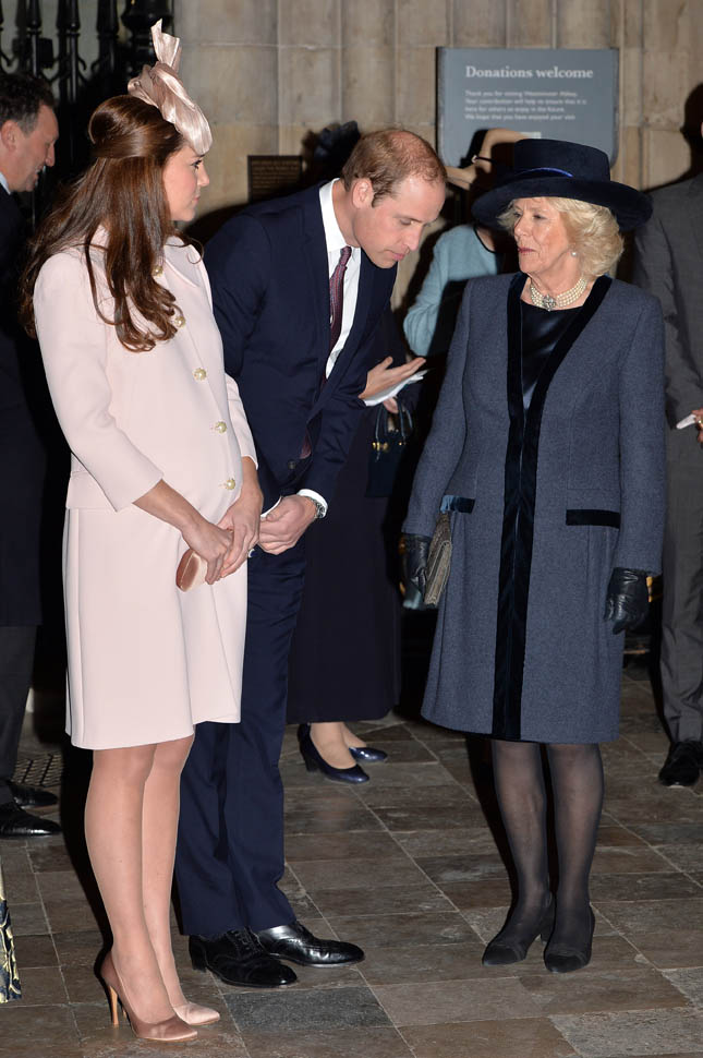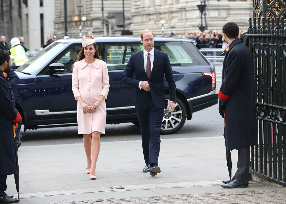 Here they are, the Cambridges, in London today at Westminster Abbey, attending the Commonwealth Service with Prince Charles and Camilla. It might be the last time we see them paired together before the arrival of the spare.