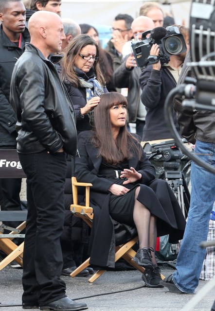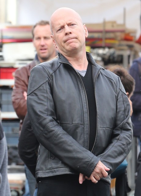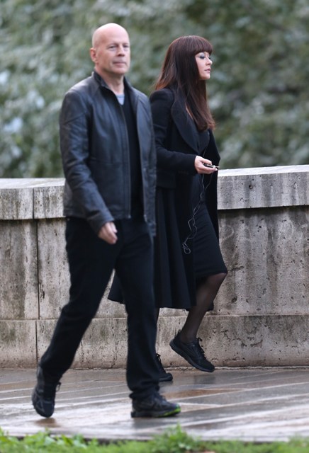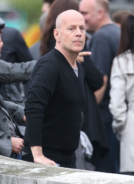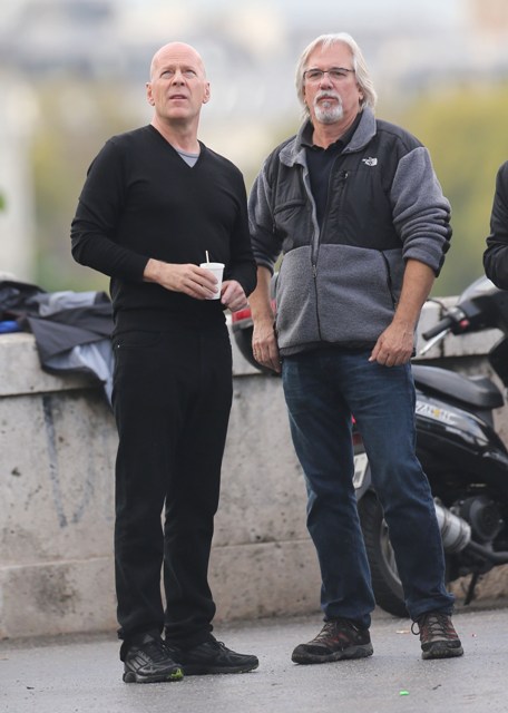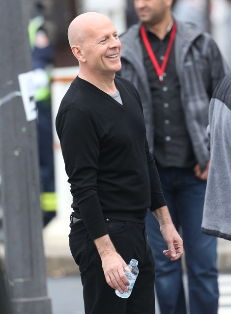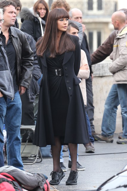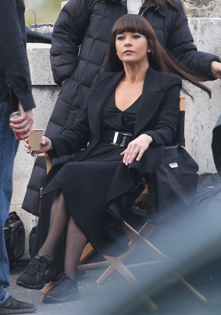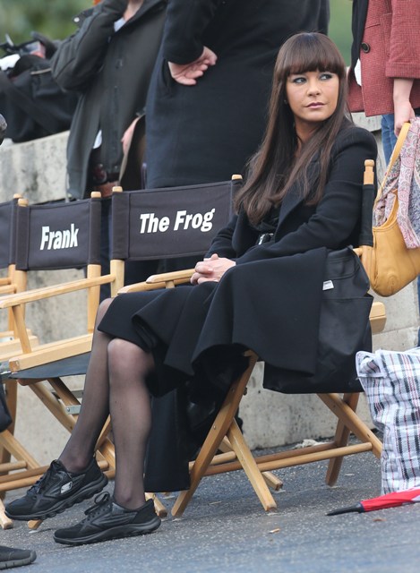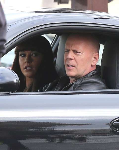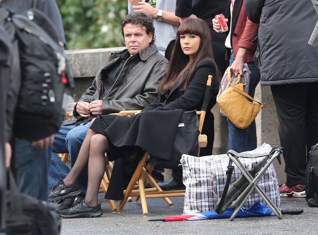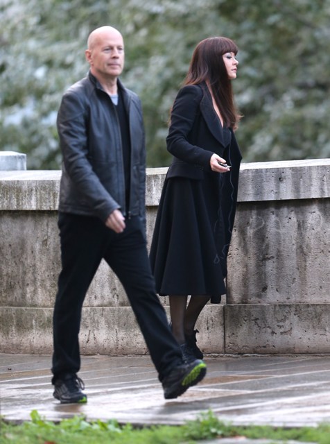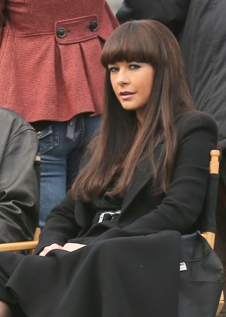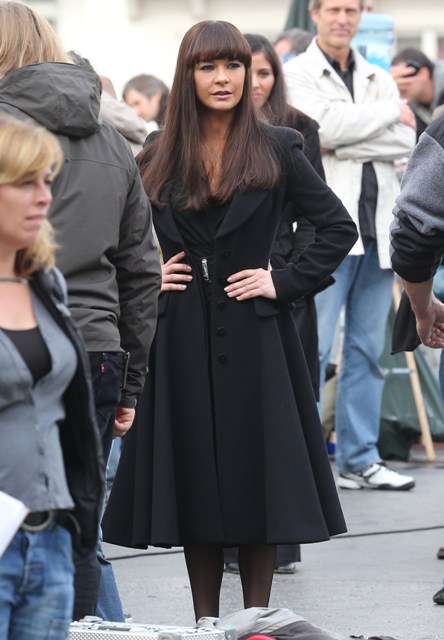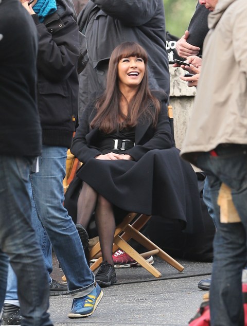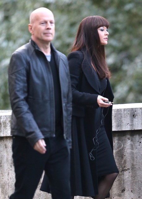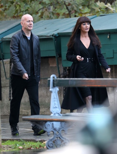 Did you see RED? I liked RED! Am I dumb? Was I blinded by the Mary Louise Parker? I am partial to Mary Louise Parker. They're making a sequel now and she's in it, though not pictured. Rather, here's Bruce Willis with Catherine Zeta-Jones on the set of RED 2 today. That's a harsh fringe. But I do like the idea of these two together in a movie, if only because I'm curious what their chemistry might be. Have we ever talked about CZJ's chemistry with her male co-stars? I wasn't feeling it with Tom Hanks. Or George Clooney. Or Brad Pitt. Or Aaron Eckhart (God The Restaurant was terrible). This is not an allusion to anything deeper, simply an observation about her movie presence. She's great to watch and certainly a wonderful performer. But for some reason I don't buy her as a romantic half. You?