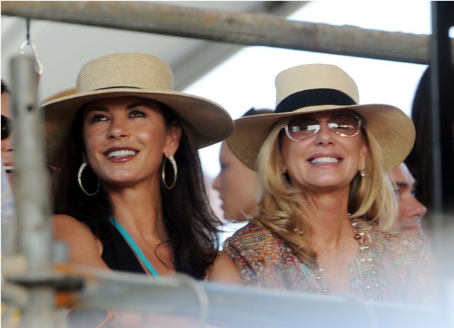 Catherine Zeta-Jones is shooting a movie with Gerard Butler, Uma Thurman, and Jessica Biel in New Orleans. She hit up the New Orleans Jazz Festival with her mother, and also Jimmy Buffet’s wife Jane.