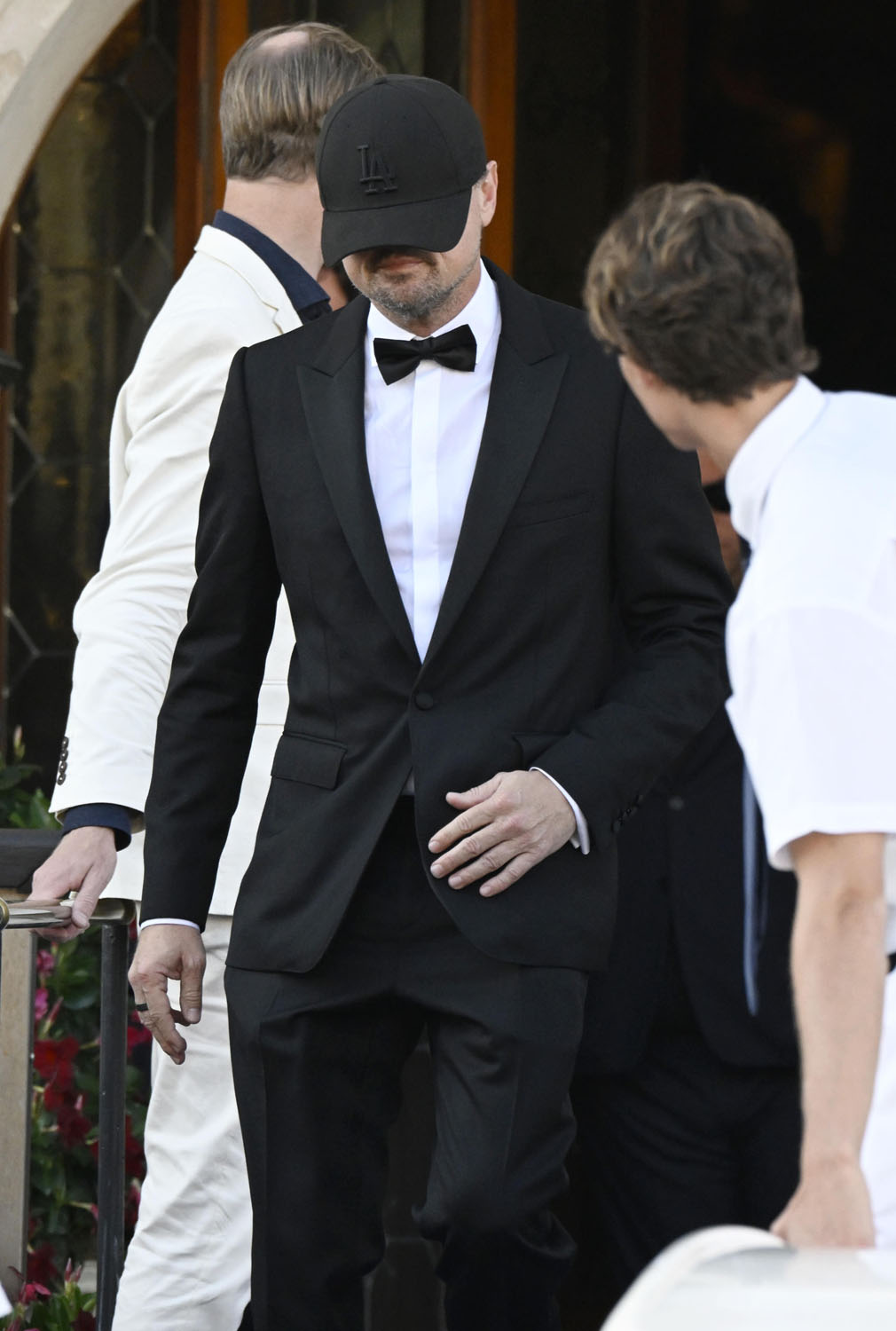 No one looked funnier making his exit than Leonardo DiCaprio. There was truly no one who wanted to be photographed less at this wedding than Leo.