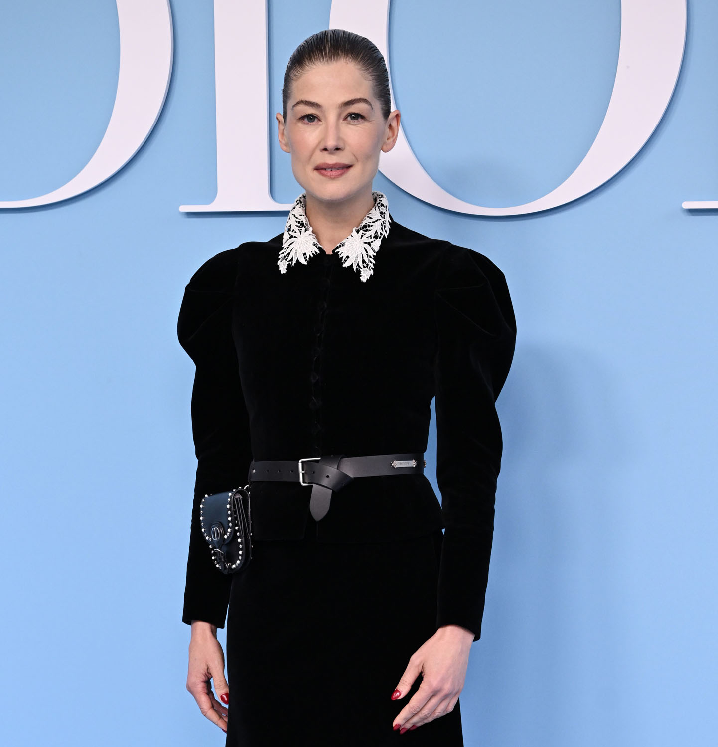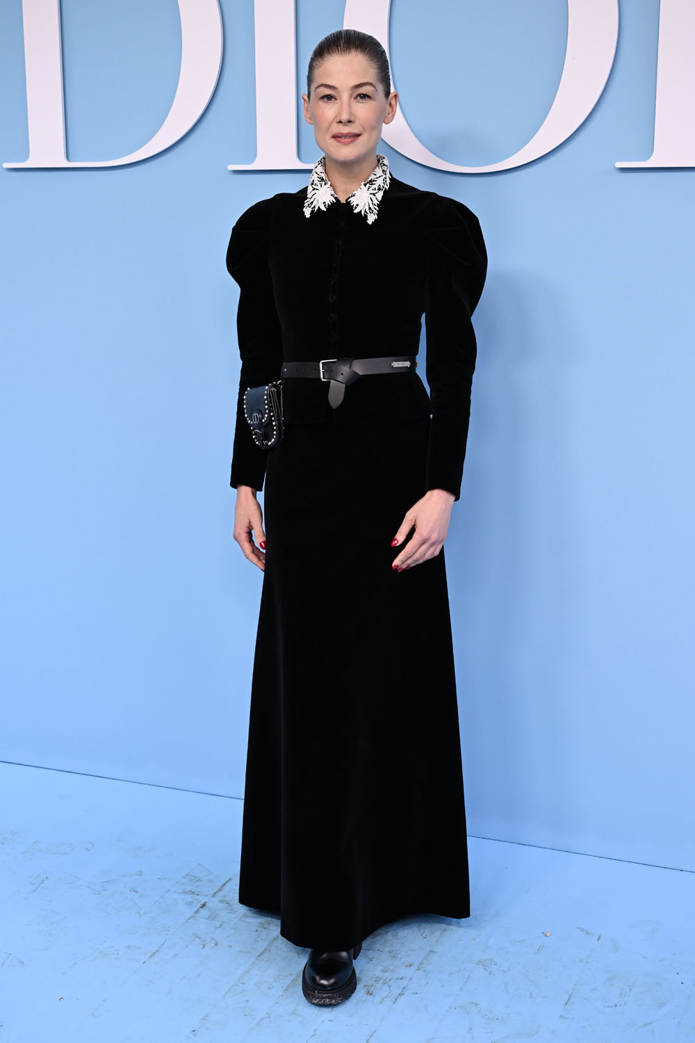Let’s get back to Dior and, perhaps, another Ben Affleck connection if we’re going all the way back to Gone Girl, and by far the biggest c-nt at the show, which we mean in the best way possible: Rosamund Pike wearing an extremely Rosamund Pike dress. We LOVE.