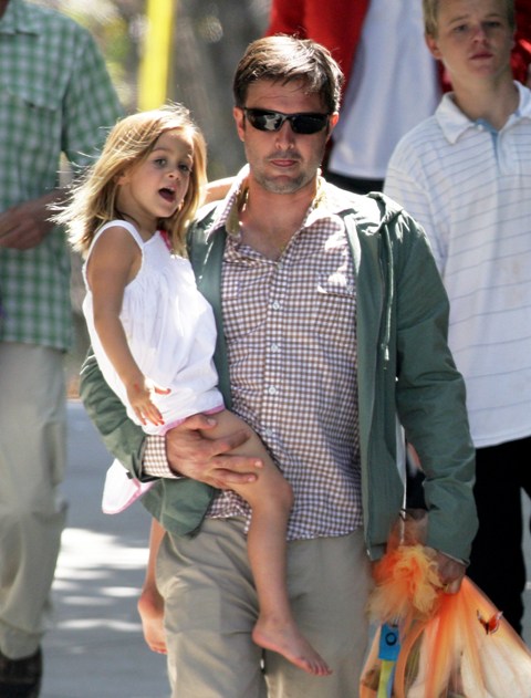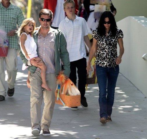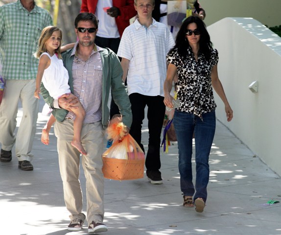 Coco Arquette turns 5 in June. Was seen with her parents Courteney and David heading to an Easter Egg hunt or something. Coco has great natural colouring. Nice warm skin. Very interesting face. She’ll be gorgeous, non?
