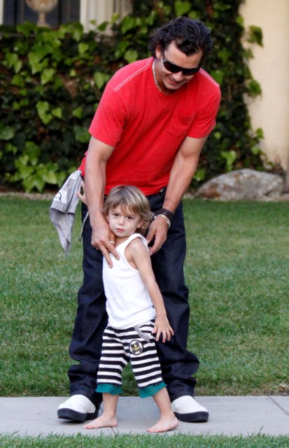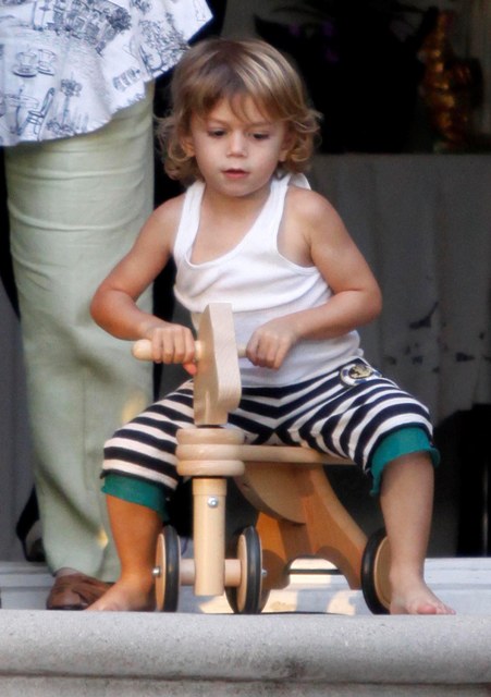 Kingston Rossdale spent Easter Sunday at his grandparents rolling around in his tricycle. Same skin tone as Coco. Come to think of it, they’ll look great together in 15 years. Kingston takes the best pap photos. Wonder if Gwen buys them from the agencies. Wonder if Gwen has to buy her own No Doubt tees. I want that one.