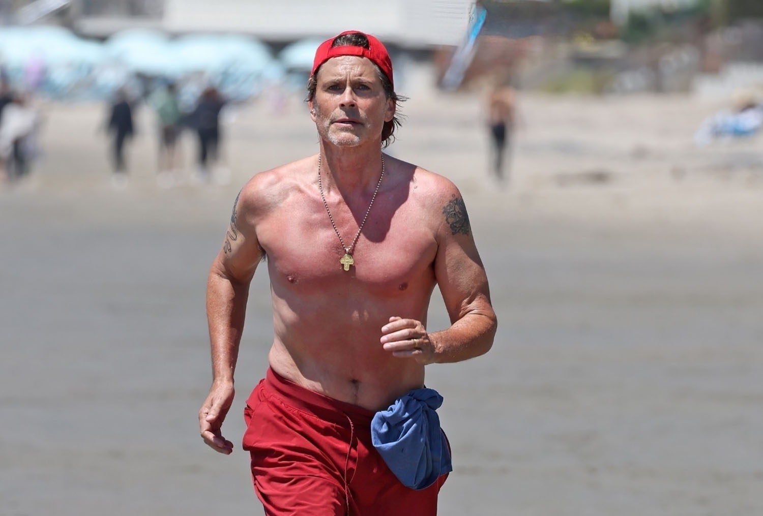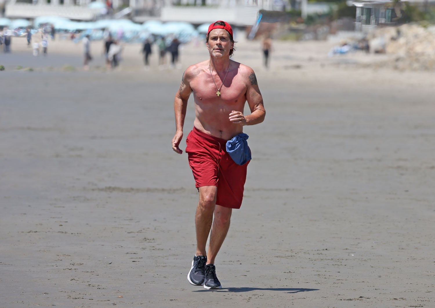 Attached - Rob Lowe running on the beach in Santa Barbara on the weekend.