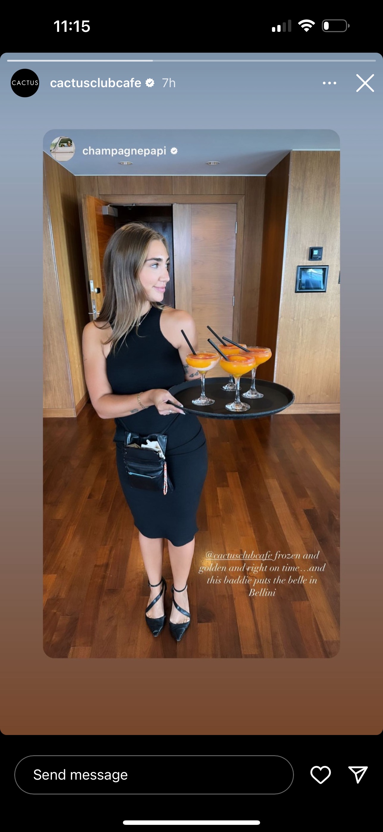 Earlier this week, I posted about Drake being spotted outside of a Vancouver Cactus Club (an upscale chain restaurant) and it turns out, he couldn’t go in because too many fans saw him. So he made his demands from his hotel window: four bellinis, delivered frozen in a glass. He even specified the red top. Cactus Club came through (obviously) and this is the perfect ending to this story.