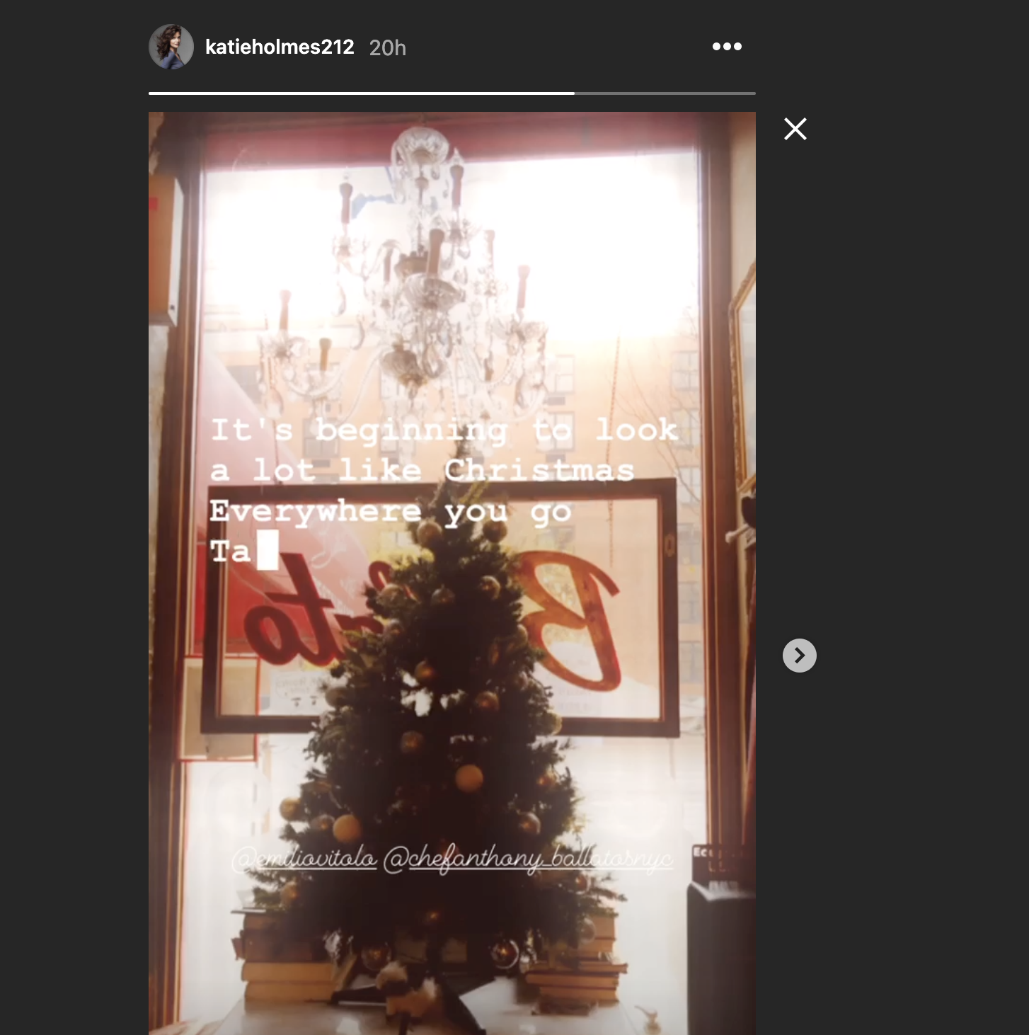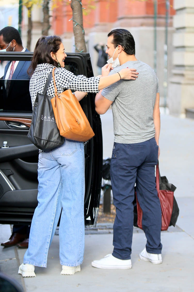 OK, so Katie Holmes has kind of gone Instagram-official with her boyfriend Emilio? She posted a video in her stories (screenshot below) and tagged Emilio and his brother, in support of their family restaurant. And they are painting together – she commented with star emojis on his. Very basic stuff but this is bold for Katie. Will we get a Christmas or New Year’s Eve shot of them? A lot of people get engaged over the holidays. Just saying.