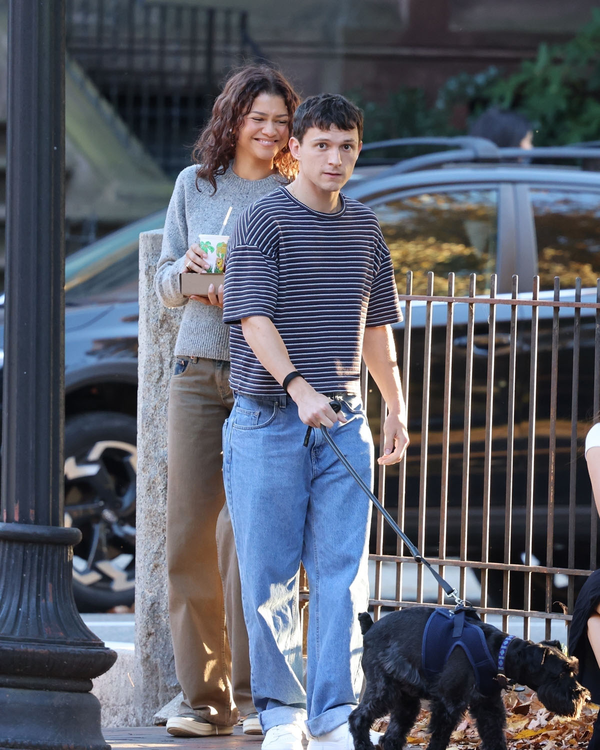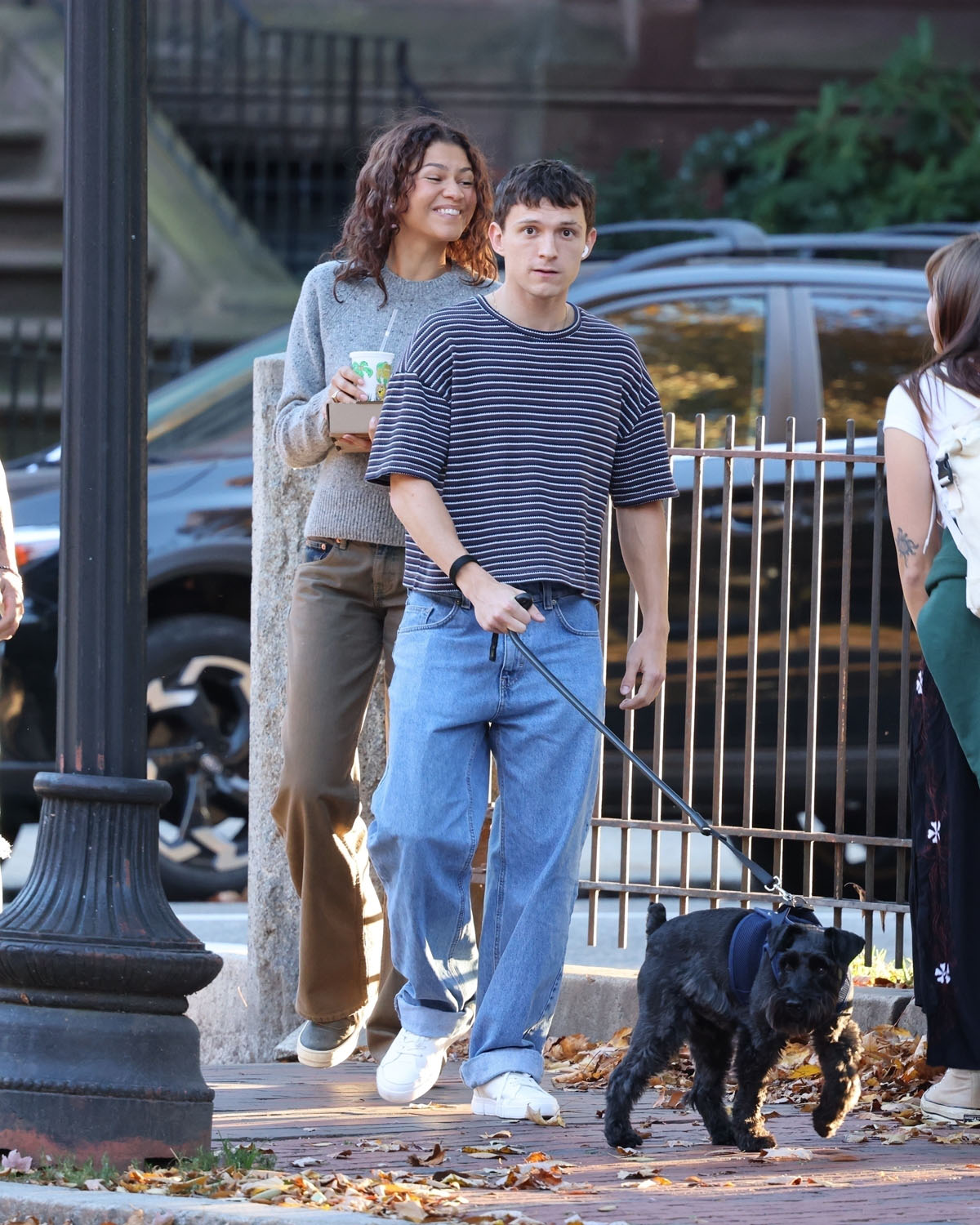 Attached- Zendaya and Tom Holland walking their dog in Boston a few days ago.