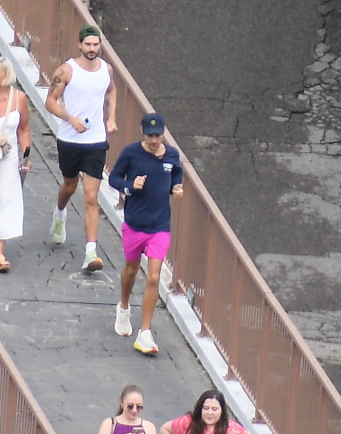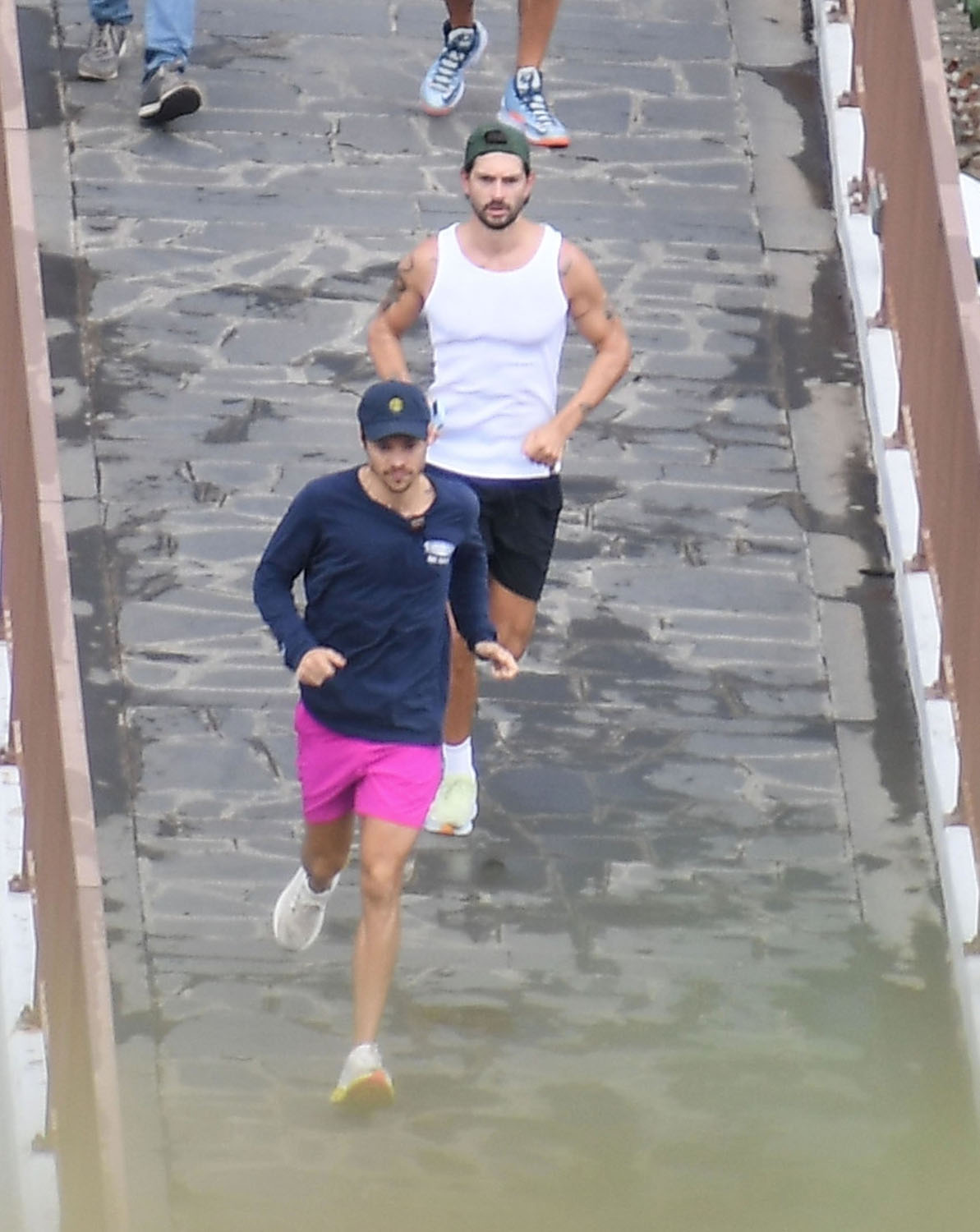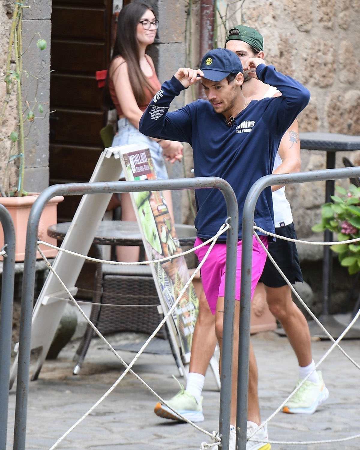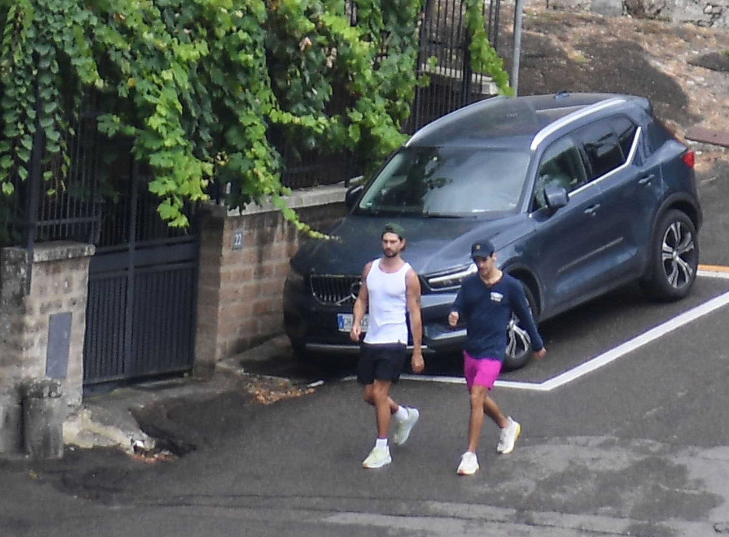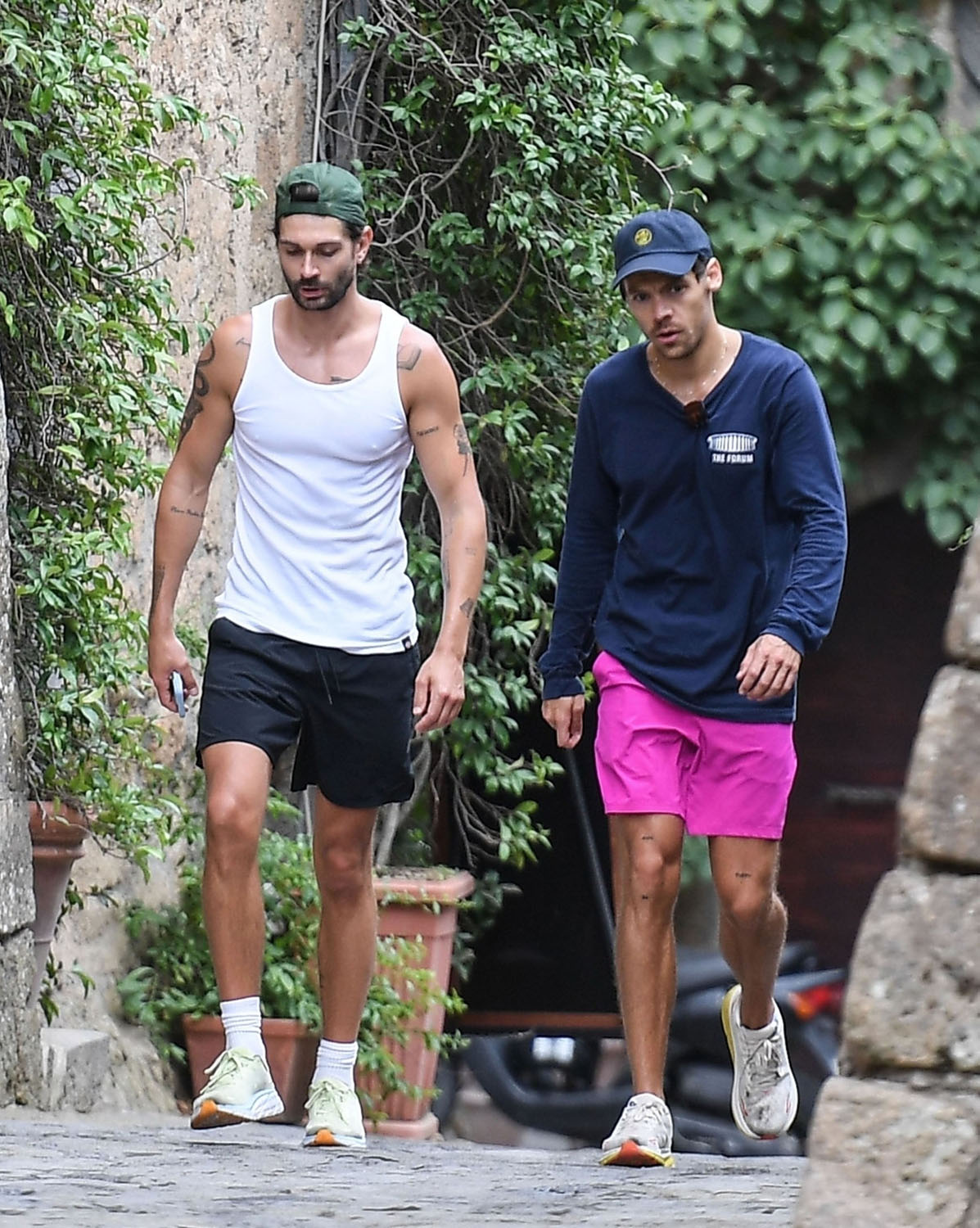 Attached - more shots of Harry Styles out in Italy with his trainer yesterday.
