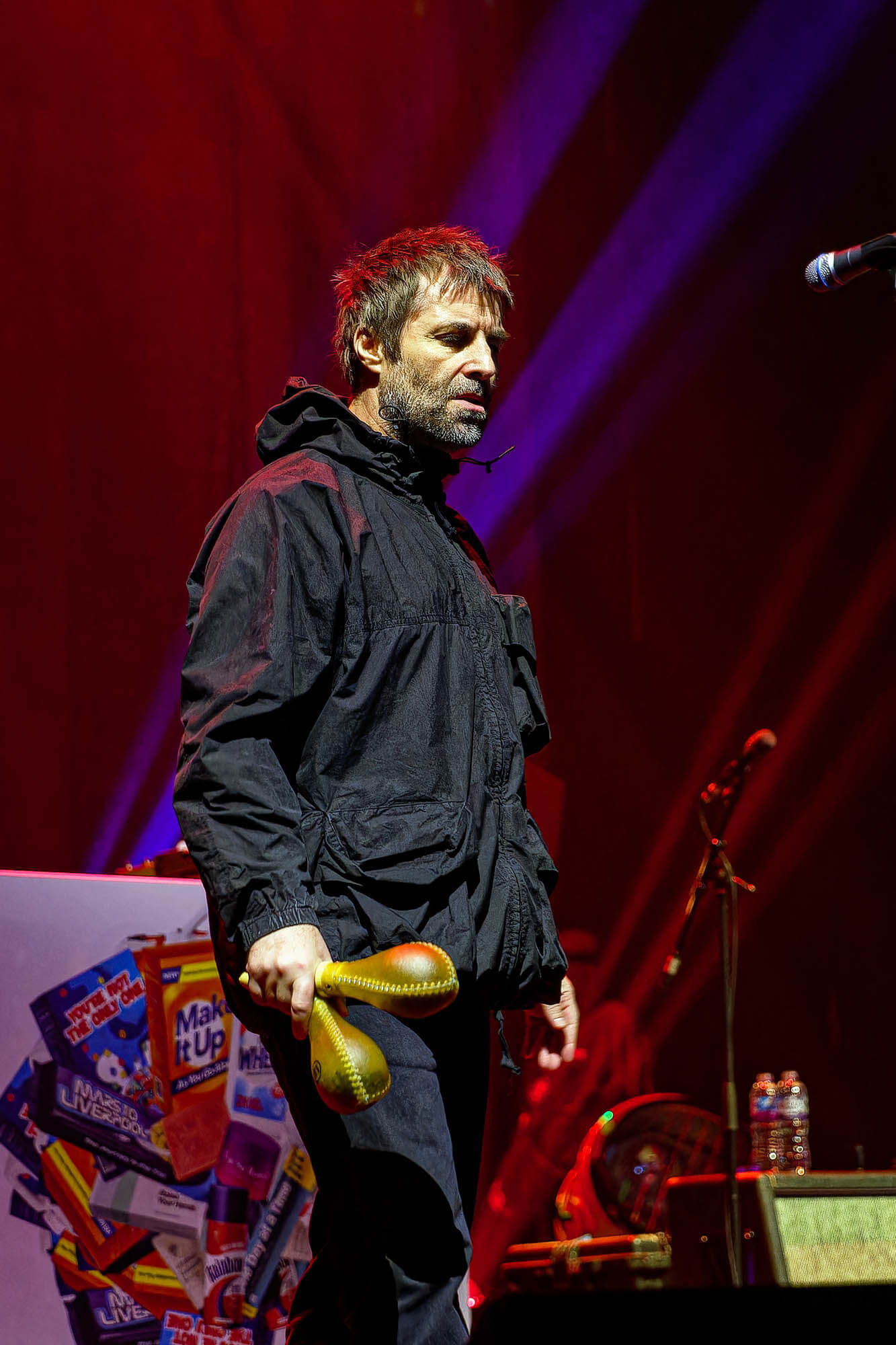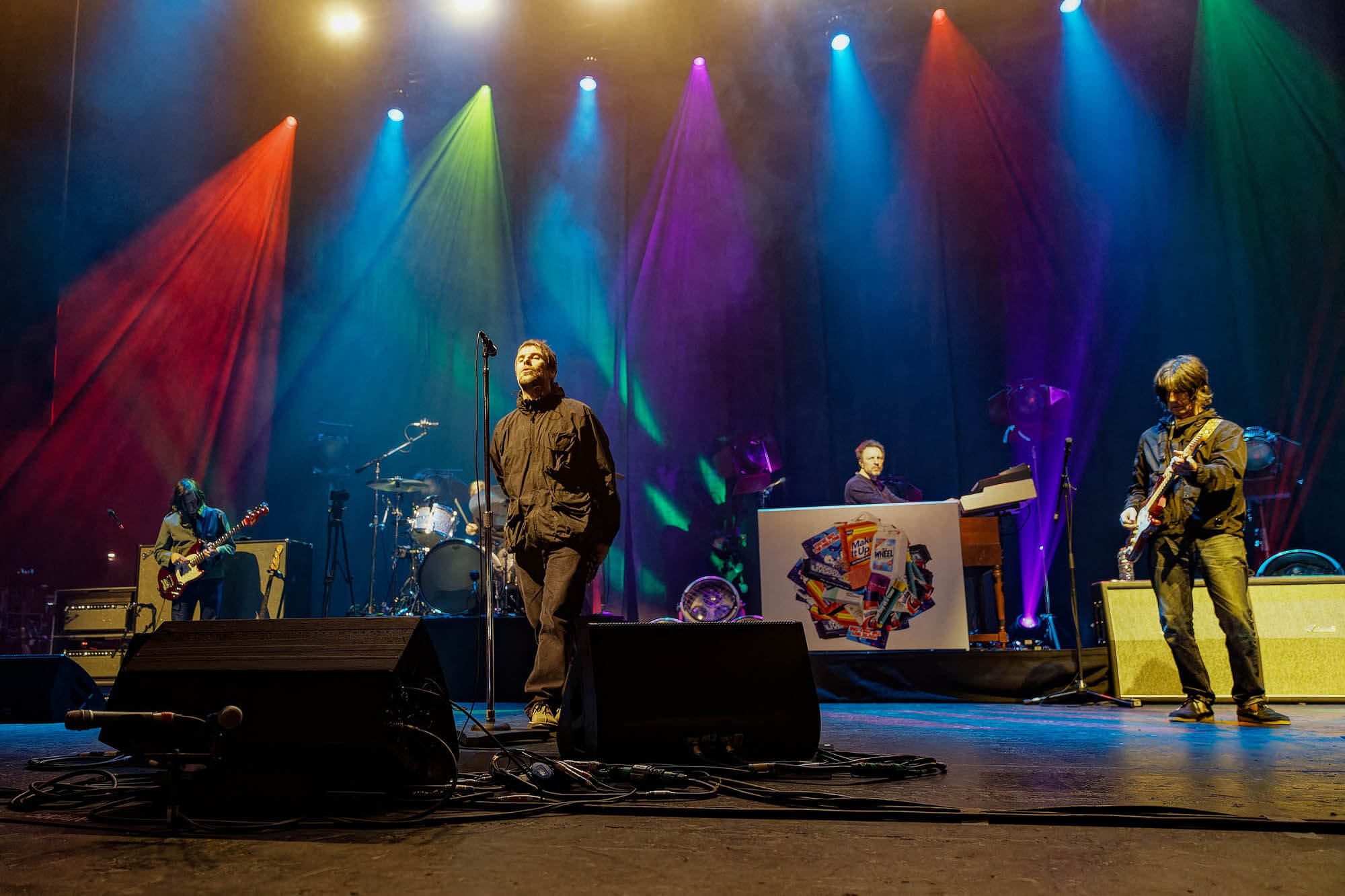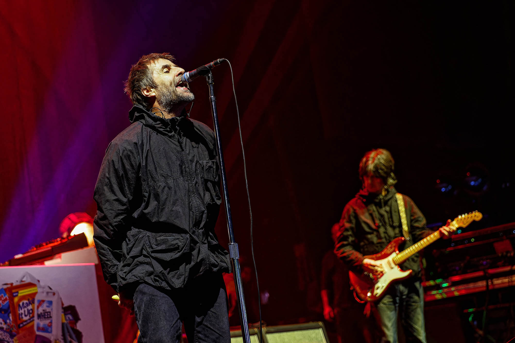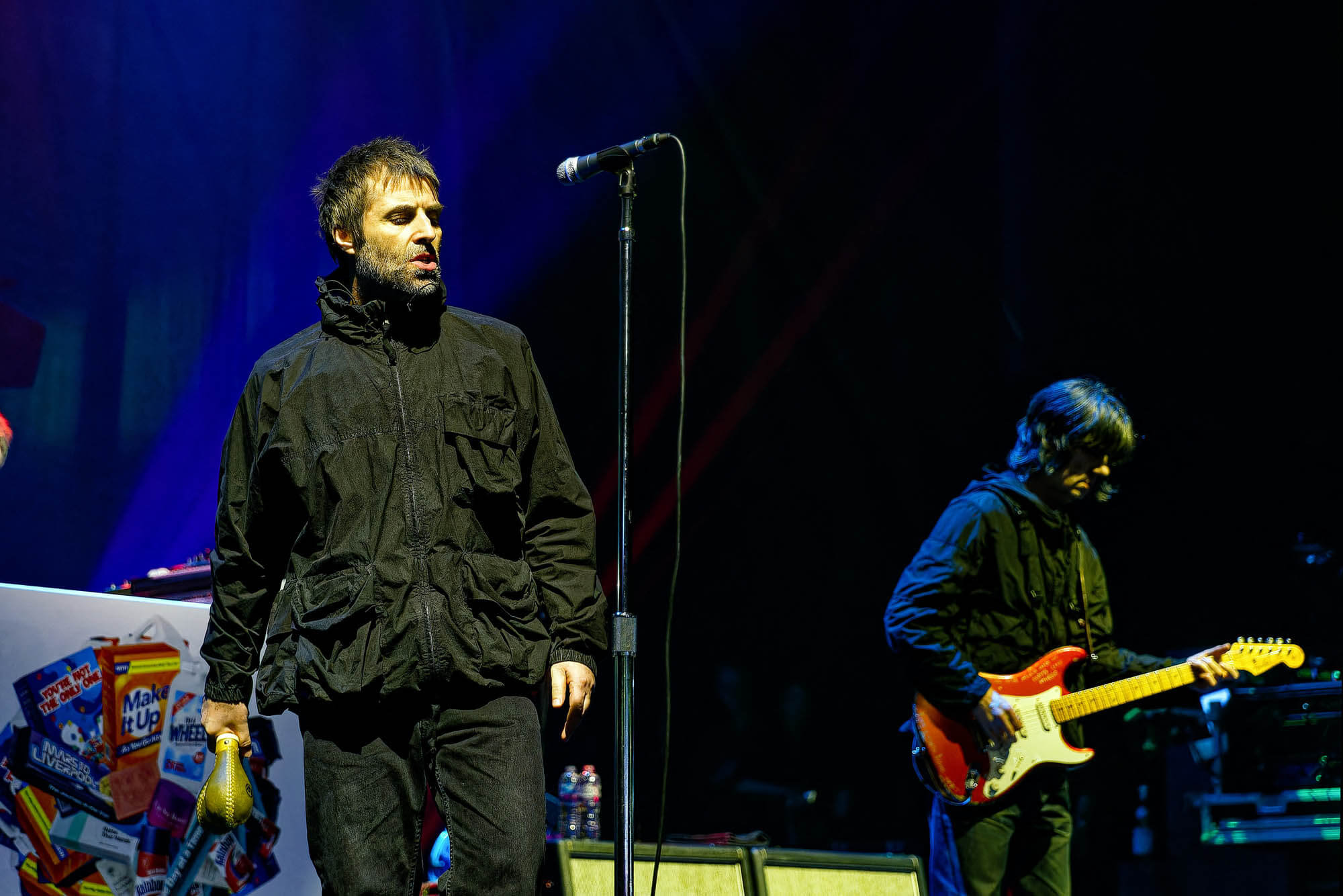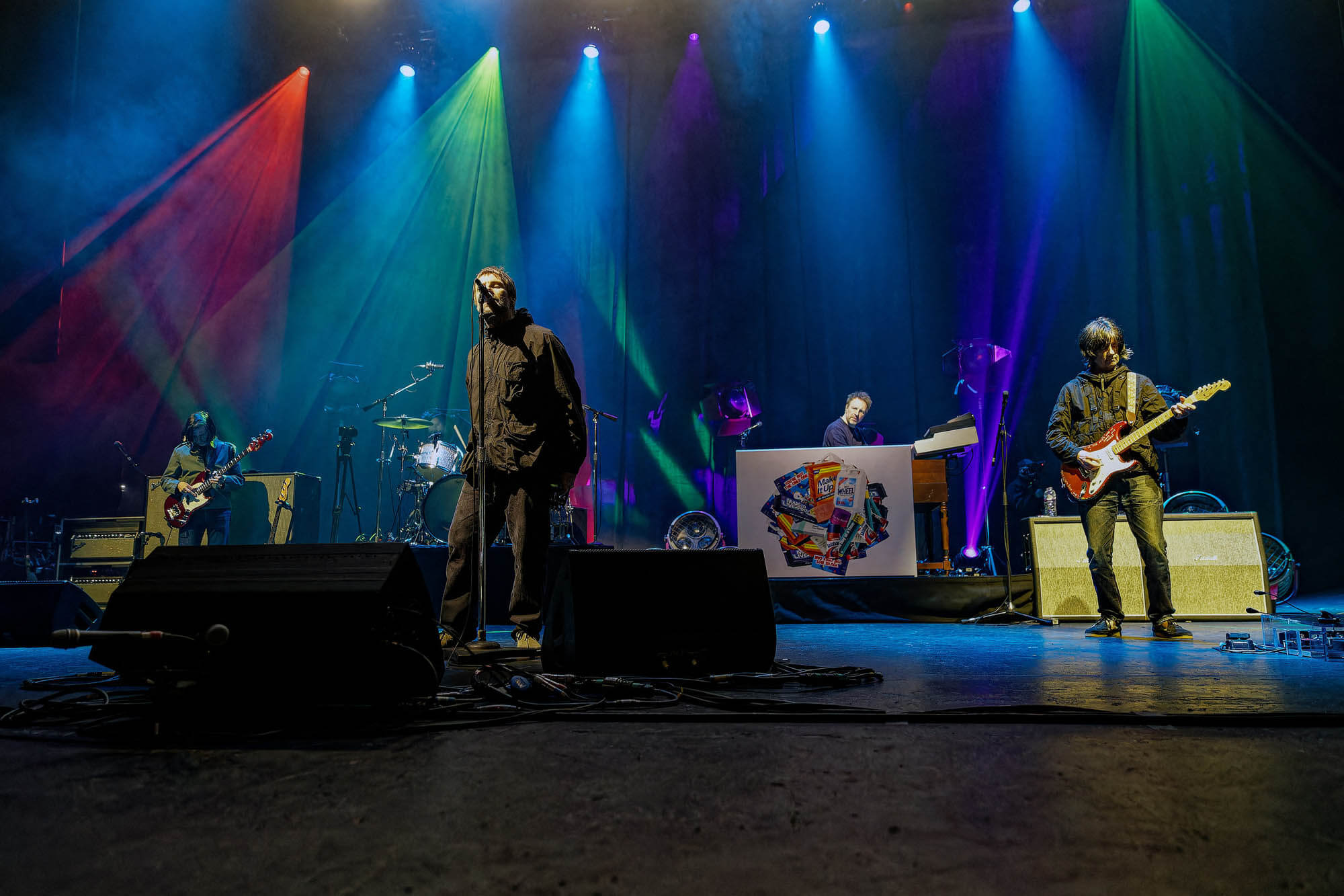 Attached: Liam Gallagher and John Squires in concert at 02 Apollo in Manchester, England in March.