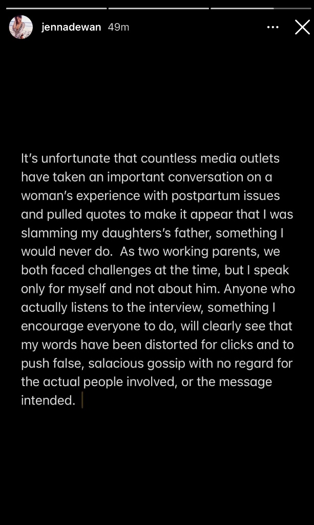 This next section is layered so I will try to break down as best as I can. Jenna Dewan was on Dear Gabby (a podcast) talking about her postpartum experience with her first child. She and Channing Tatum were in London, where she gave birth, before having to fly to Vancouver to film a TV show. She said it was difficult to travel with an infant and breastfeed and not having a physically available partner added to her anxiety. I read the quotes before I saw the headlines and immediately knew it would be turned into Jenna vs. Channing. (Yahoo UK: “Jenna Dewan claims Channing Tatum was unavailable after child’s birth” and US Weekly “Jenna Dewan Details Welcoming Daughter Everly ‘Without a Partner’ in Channing Tatum’s Absence.”) That was not the spirit of her quote as they both had professional commitments and working and absenteeism are two different things. It was just a sh-tty situation (that many caretakers without insufficient parental leave can relate to).