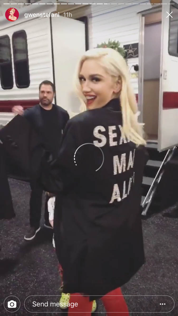Gwen and her children jokingly wore this backstage and yes it’s extra but it’s also kind of cute – everyone was trying it on.