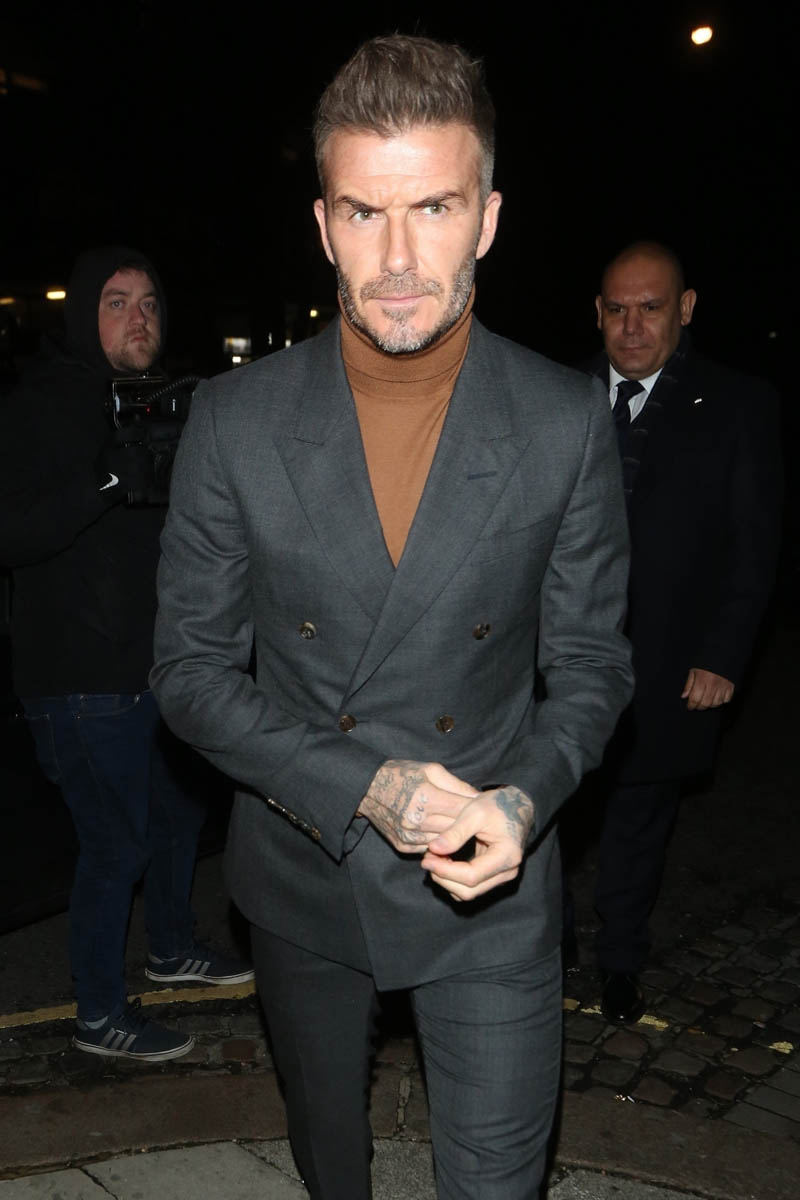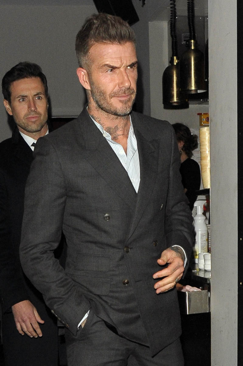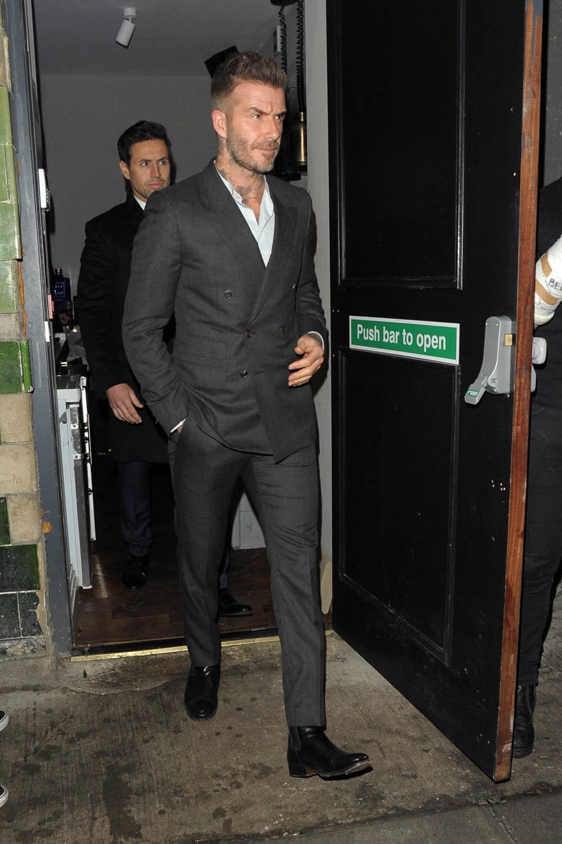 David Beckham is a spokesperson for the Haig Club and hosted a party this week. Victoria’s sister attended, as did Brooklyn with his date. Socialite Mary Charteris, someone who The Sun once implied was a problem for the Beckhams, was there, as well as David Gardner (who is with Liv Tyler – I didn’t find any photos of her at the party). Should Victoria be the one worried in this situation? Also, The Sun took this opportunity to announce David’s “new thicker hairdo” which cracks me up to no end. They just won’t let it go.