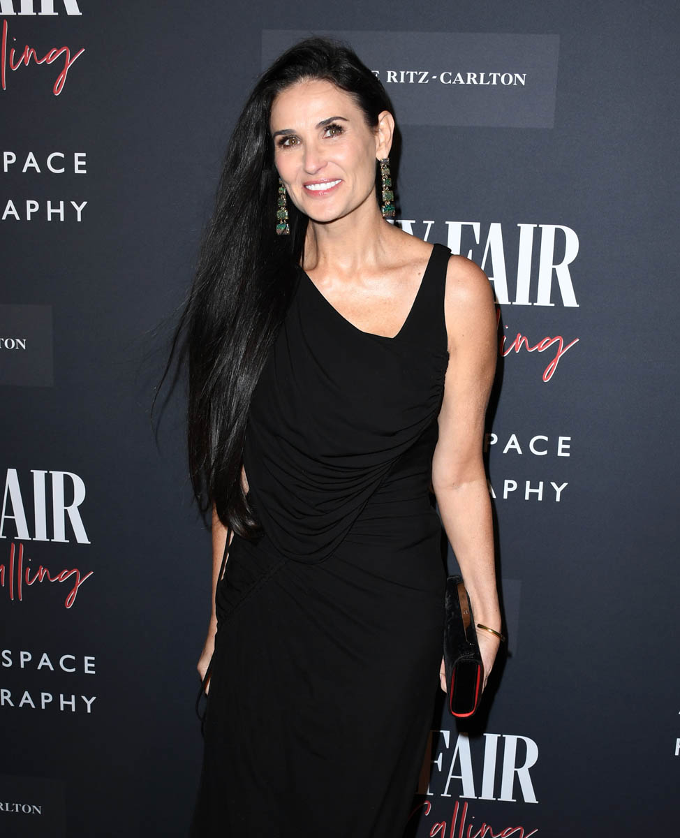 Demi Moore also looks great in black. She did a makeup video with Gucci Westman and Demi doesn’t wear all-over foundation, only in spots she needs it. The greatness of the work she got done (whatever it is) is that it’s subtle and effective in keeping her face as is; she’s not getting tighter and plumped up as time goes on, which is a trap many fall into. Maybe she stayed away from the most obvious zones, like the lips. That’s always a dead giveaway.
