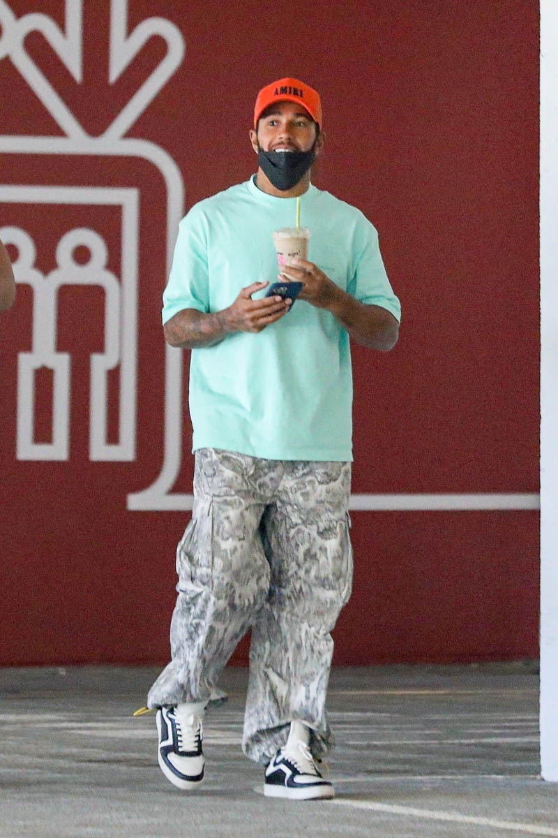 Me again, subbing in for Maria here. She’ll be back on Monday. But today is Friday and regularly on Fridays, between March and December-ish, we get a Lewis Hamilton moment. The F1 season is on hiatus right now, though, but look, here are some new shots of Lewis in LA where he’s been the last couple of weeks, at least.