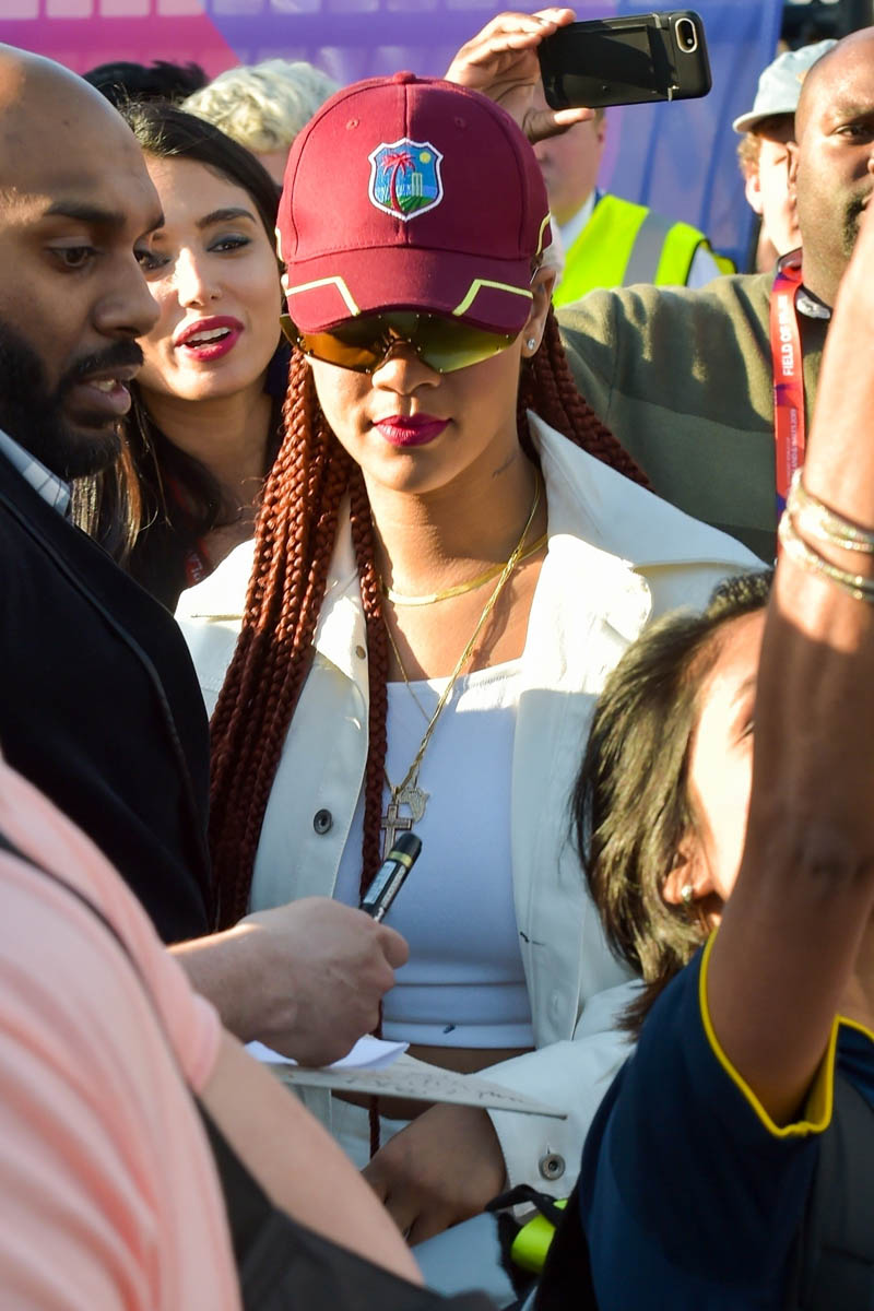 Rihanna showed up to the West Indies vs Sri Lanka World Cup Cricket match this weekend where she ran into one of her school teachers. She’s also been mentioned in the Taylor Swift mess as some people have noted that she’s no longer following Scooter Braun on social media. Was she ever following Scooter Braun though?