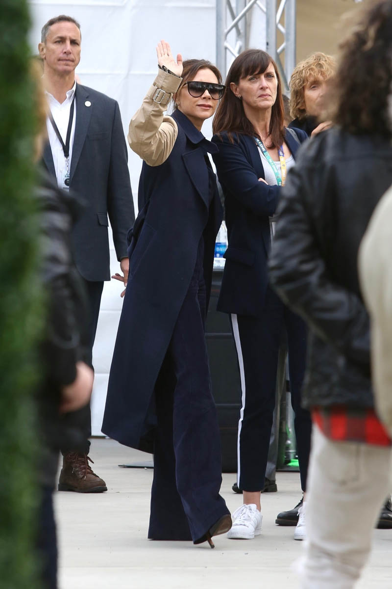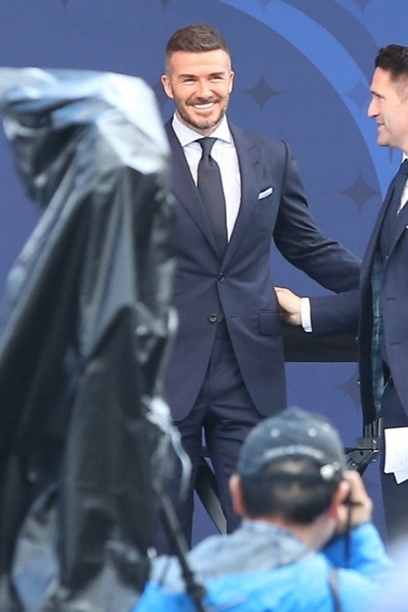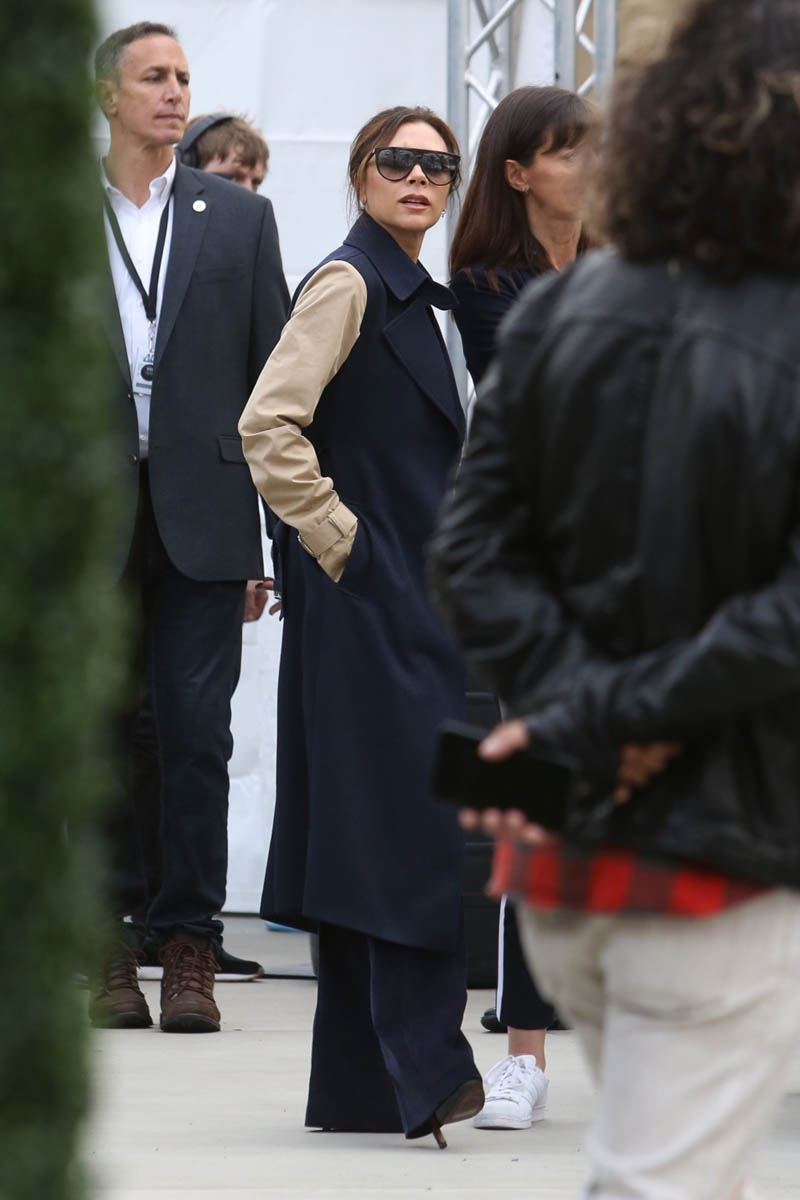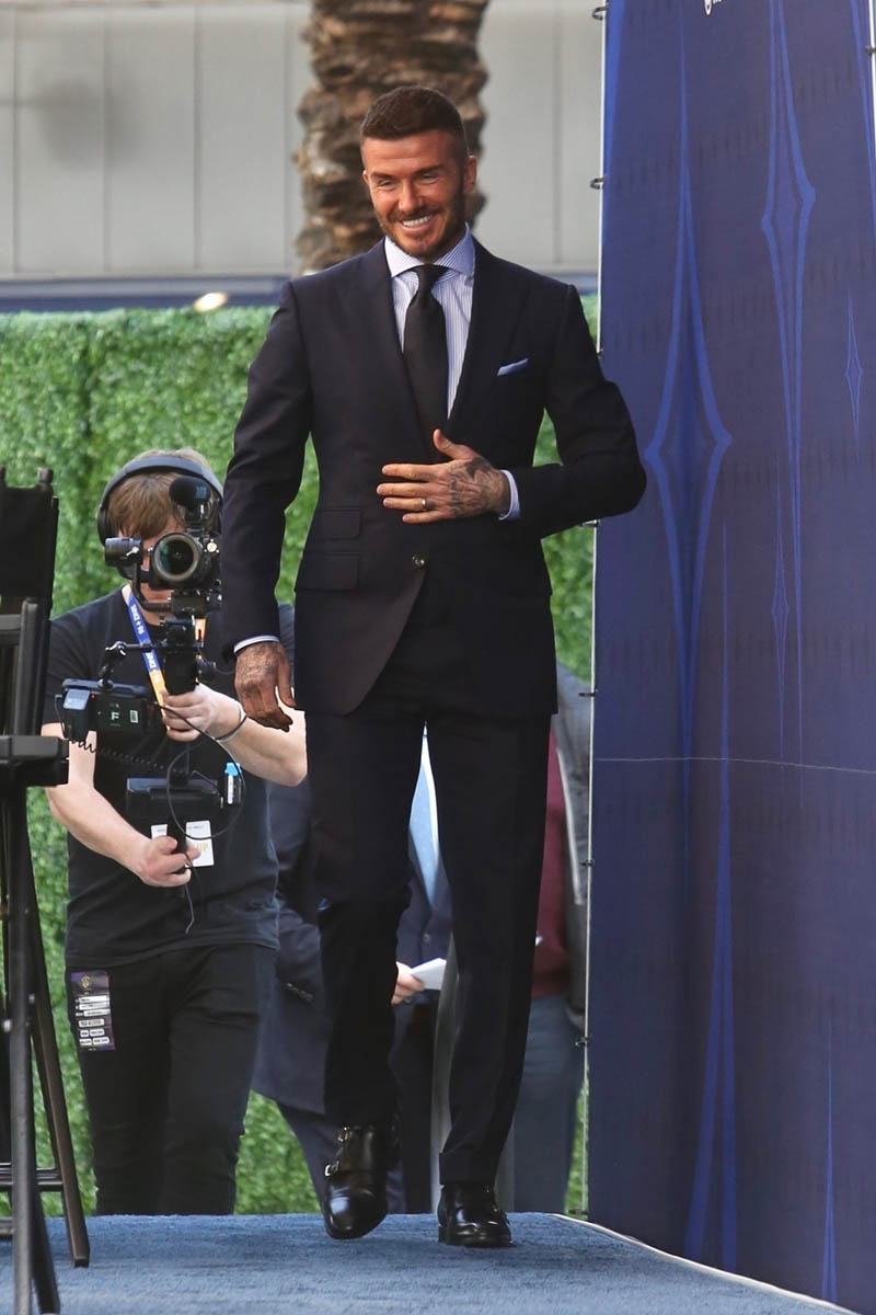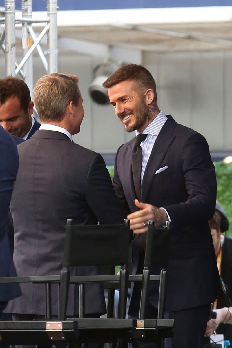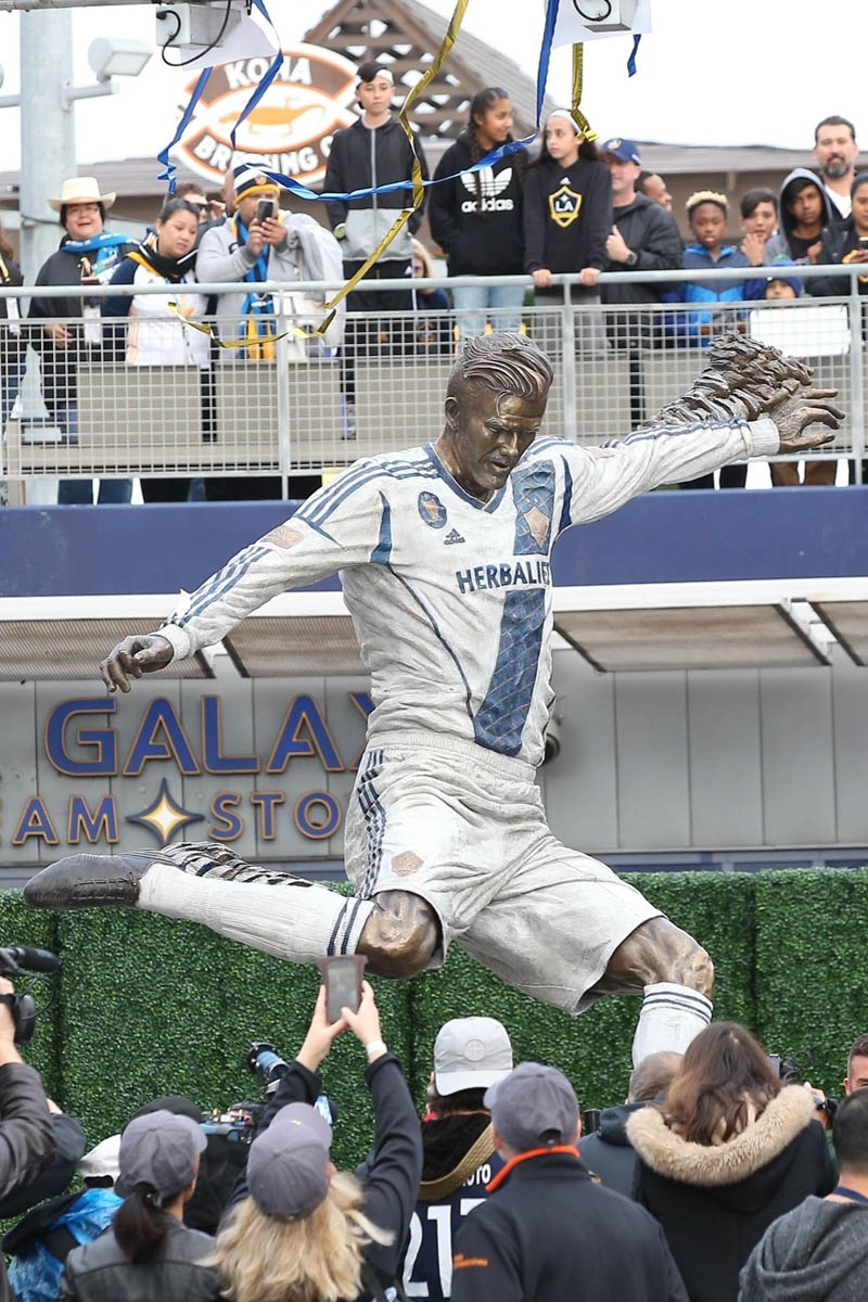 The Beckhams were in LA for work, including David’s statue unveiling with the LA Galaxy. They did a good job, right? Because we all know that statues can be extremely tricky (see: Ronaldo and Lucille Ball) but I think this works because the focus isn’t on the face but rather the motion. Also they gave him a lot of hair on top, which again pulls focus from the face, which can look really wonky on a statue.