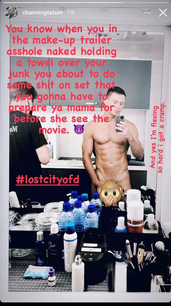 Channing Tatum posted this on Instagram stories with the hashtag Lost City of D, which is a movie he’s working on and also a great caption for a dick pic.