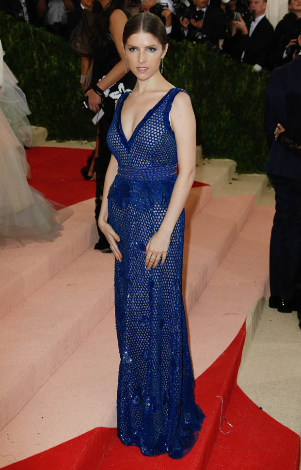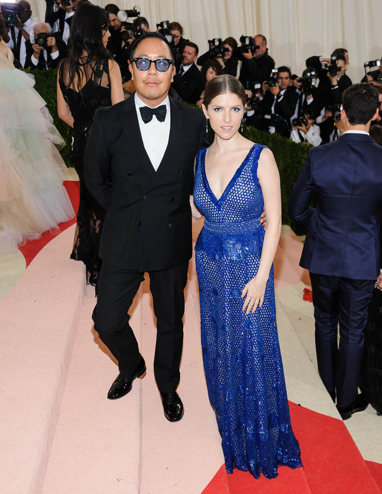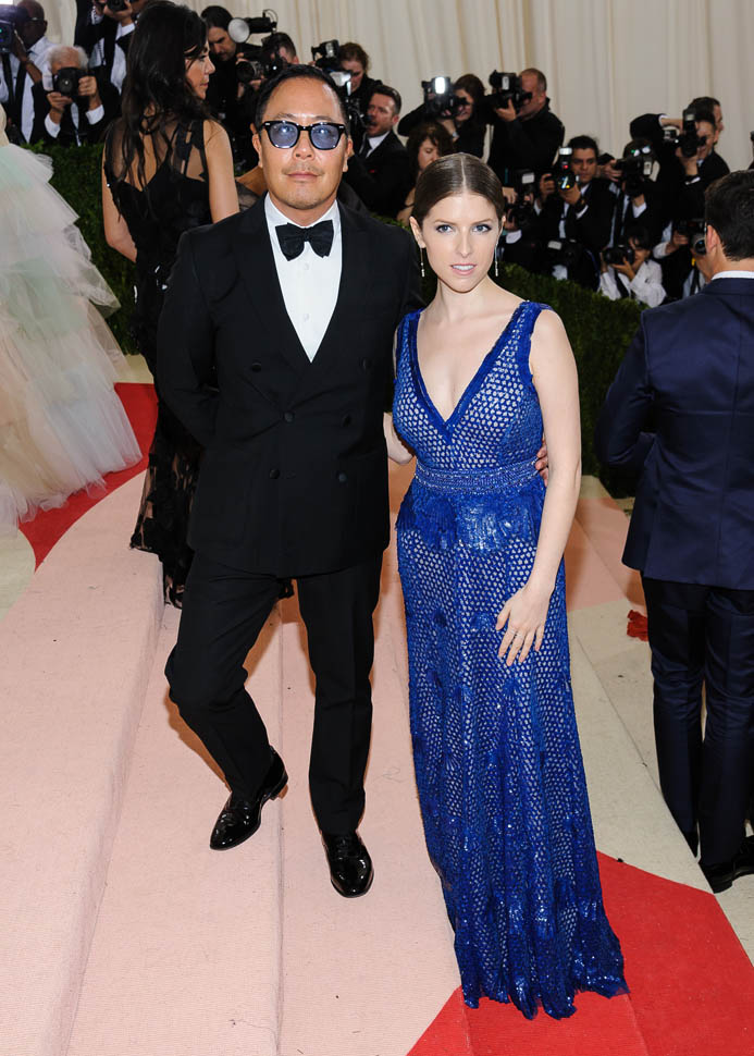 @annakendrick47 stunning the #metgala in her custom #DerekLam blue sequin gown. Her date @thedereklam is looking quite dapper as well. #ManusxMachina