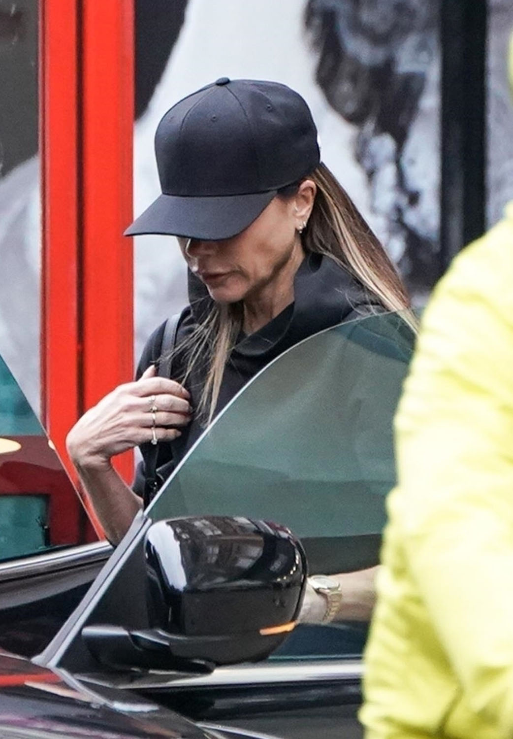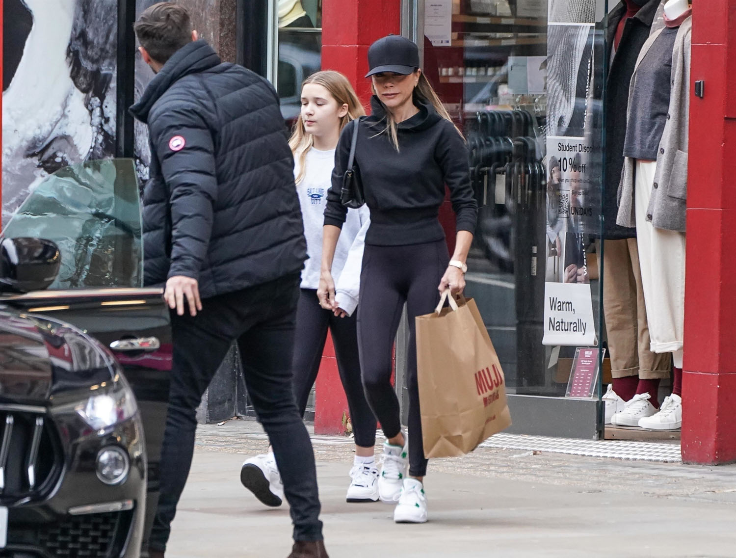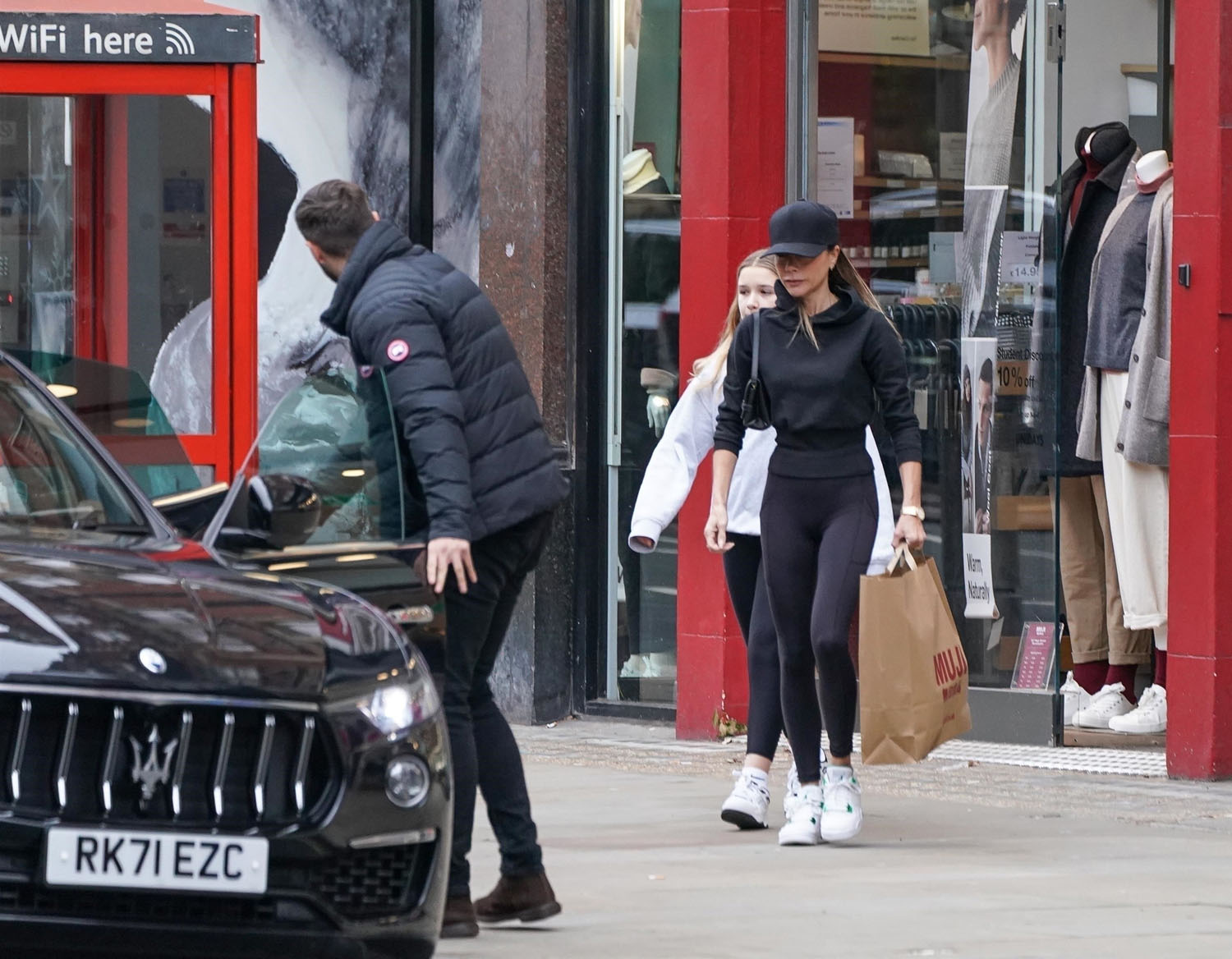 Attached- Victoria Beckham out the other day with Harper in Kensington.