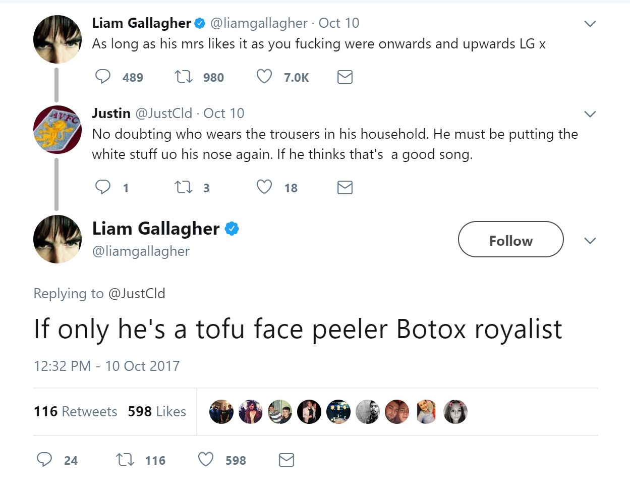 I always joke that there are only 3 of us that care about Dave Grohl, but every time I post about him, I hear from a few more people. And the Gallagher brothers? I’ve never gotten more tweets and emails about any other celebrity. Noel has new music out, which prompted Liam to call him a “tofu face peeler Botox royalist.” Noel seems genuinely infuriated about Liam’s comments on his appearance at the Manchester benefit concert. They haven’t spoken directly in years. But to take us into the weekend, Noel and Dave Grohl, courtesy of Juliette Lewis (with a cameo by Pink). And a note on Dave’s relationship to the brothers: he’s friendly with both of them. I don’t think I’ve ever even heard Liam call Dave a c-nt. (The worst he has said is that Dave works too hard and ruins it for other rock stars). Could Dave, who went through a very long and public feud with Courtney Love, bring the brothers together? And how long would it last before someone throws a chair?